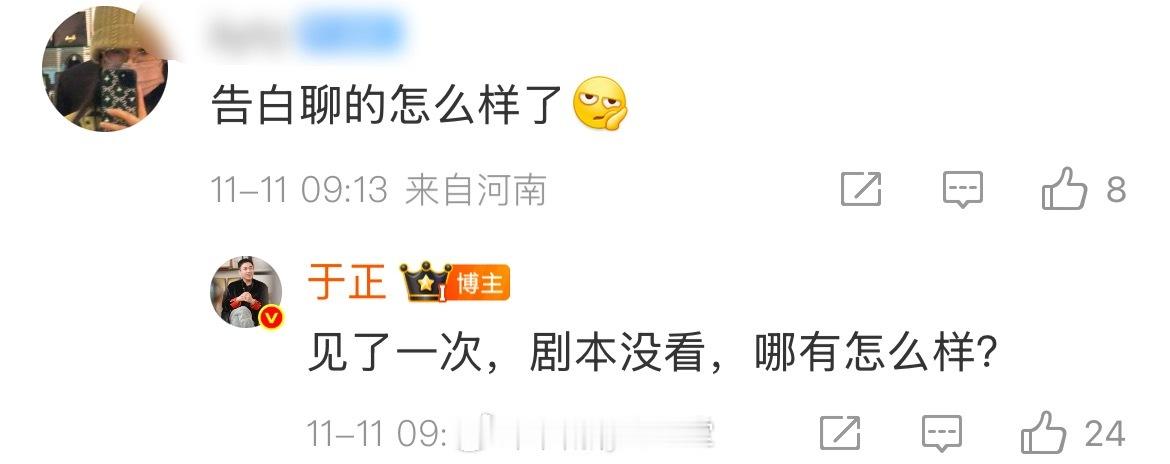 于正回应王星越演告白:只是找了我们而已,刚刚收到剧本都没看完,别整得跟什么一样。