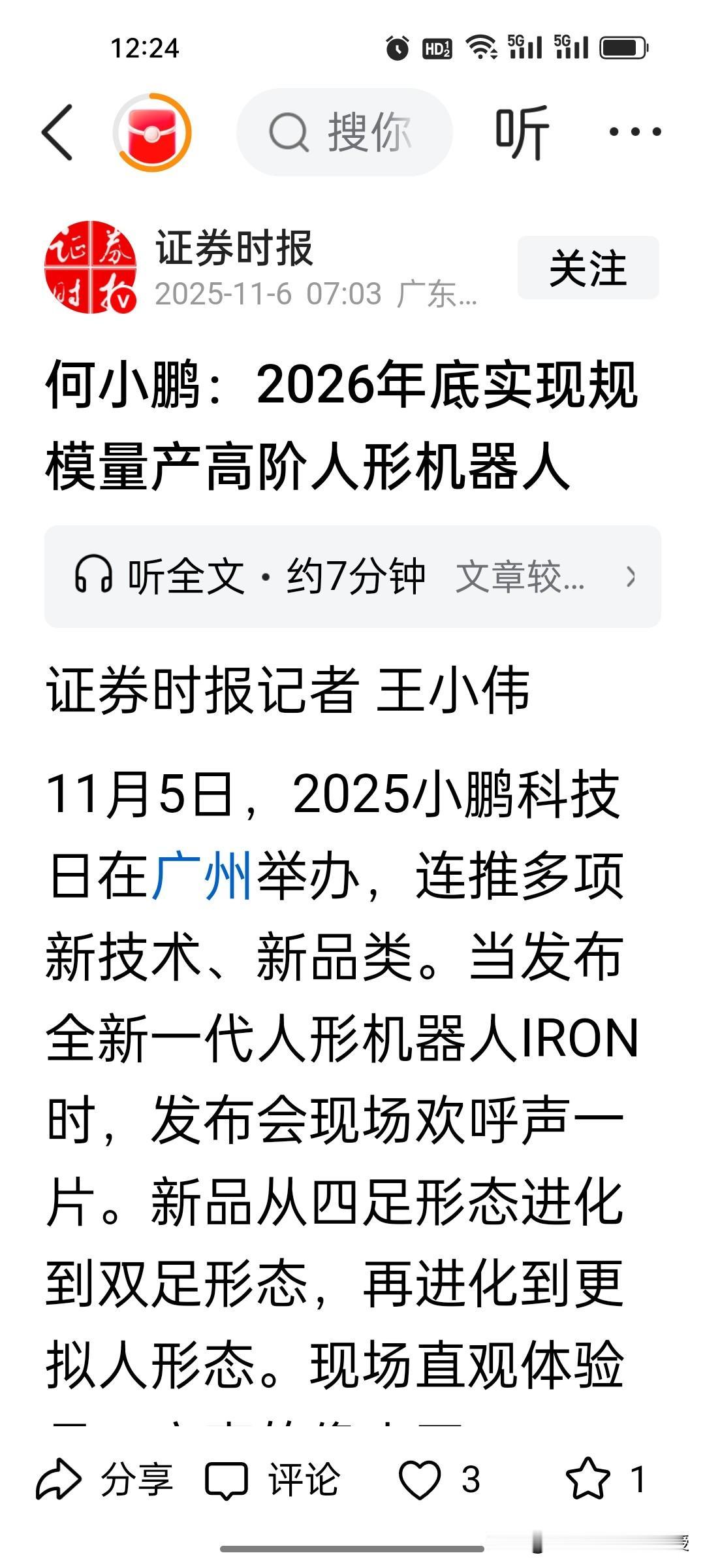 谁都没想到,当年的“蔚小理”中,小鹏汽车真的异军突起,今天确实要对小鹏汽车刮目相看!去年自研的图灵AI芯片量产落地,摆脱对英伟达的依赖,飞行汽车也已经造出来落地运营,被人们怀疑是真人附身的人形机器人明年开始规模量产。这三件大事直接对标马斯克,今天小鹏汽车股价创下两年新高,还是在特殊的“双十一”,股价突破,一飞冲天,这对一向务实低调的何小鹏来说是具有纪念意义的一天。对标强者、突破边界,何小鹏在科技创新的路上永不止步,用芯片、飞行汽车与机器人的三重答卷,让今天成为小鹏汽车的里程碑。