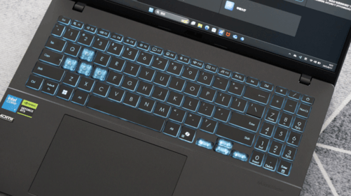 外观方面,华硕无畏Pro162025采用沉稳的哑光黑配色,A面丝滑触感材质不易沾指纹,质感高级,C面配备青色背光键盘,搭配透明键帽设计让科技感拉满,夜间打字也清晰舒适。接口部分同样到位,HDMI2.1FRL、全功能USB-C、USB-A等主流接口齐全,轻松应对外接显示器、移动硬盘、平板等扩展需求,无论是居家办公还是外出拍摄,连接体验都足够灵活。