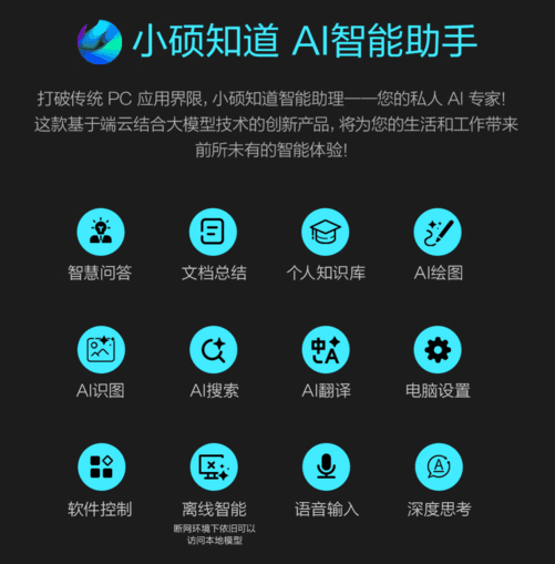 近几年AI技术的快速发展,让AI已不再是概念,而是真正成为生产力的标配。华硕无畏Pro162025内置“小硕知道”AI智能助手,集成智慧问答、文档总结、AI绘图、AI识图、AI搜索、AI翻译等多项实用功能。无论是要快速提炼报告要点、生成创意文案,还是识别图片信息、跨语言处理工作,它都能即时响应,给你高效辅助。更贴心的是,“小硕知道”基于端云一体AI大模型,即便在无网络环境下也能继续运行,出差、航班、高铁途中也不掉链子,让AI真正随时可用。