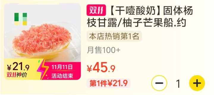 和之前在炒货店才火起来的奶皮子糖葫芦不同,这次的固体杨枝甘露几乎是刚有了一点火的苗头,就引起了多品类商家的迅速反应,在团购平台上随手一搜,会发现在售卖固体杨枝甘露的门店包括各种炒货店、甜品店、零食店,甚至火锅店,还有YOMOO酸奶碗、切果NOW等水果酸奶品牌也推出了固体版杨枝甘露。