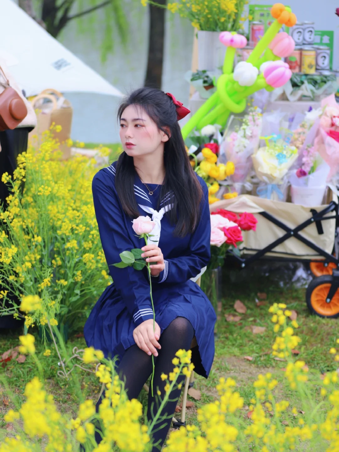 樱花树比较高,来的时候可以带个凳子