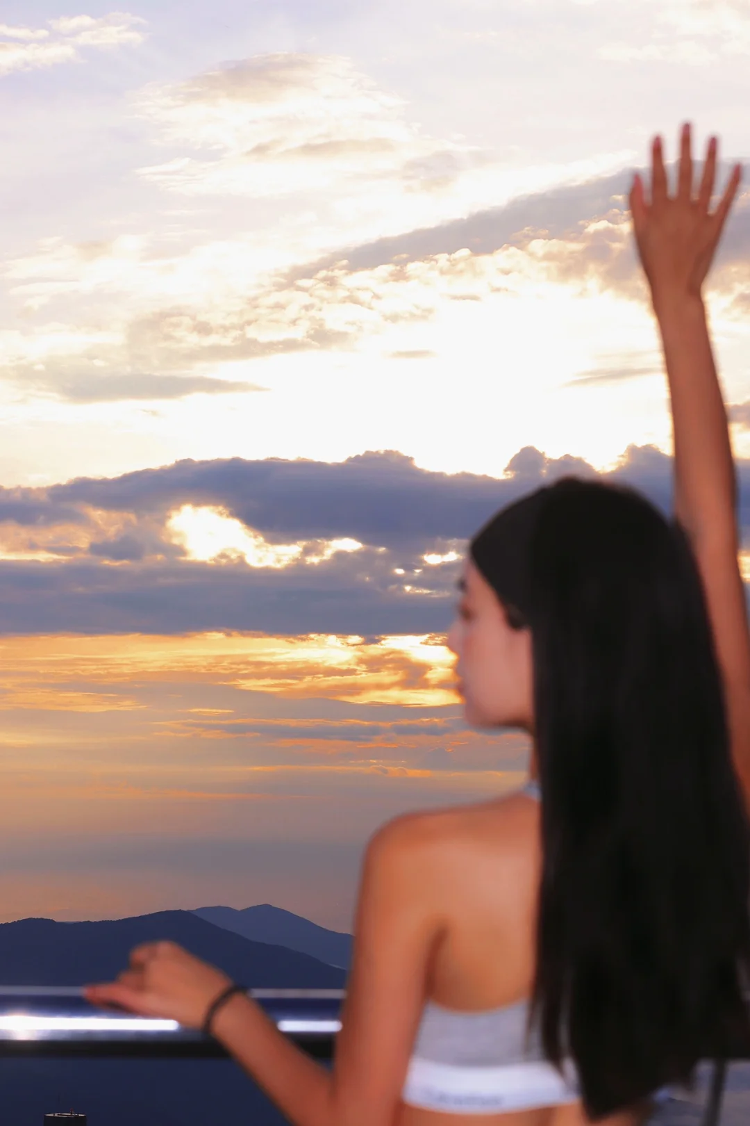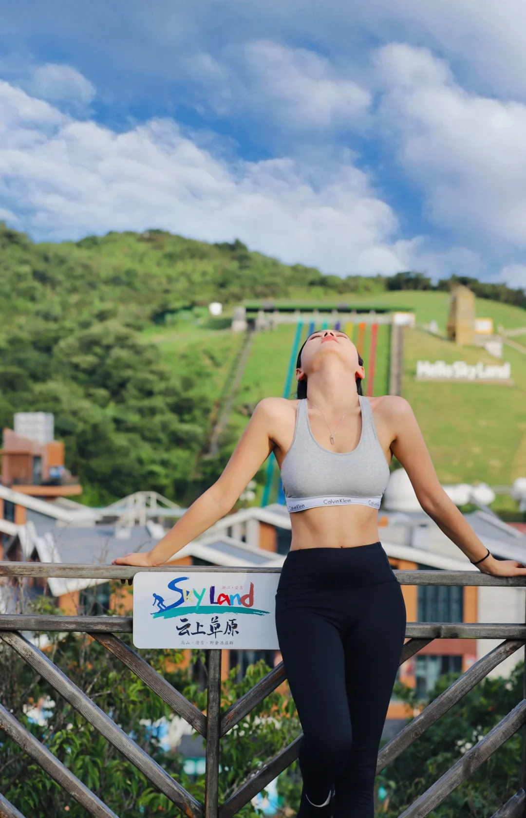 4️⃣女生着装:穿个吊带背心🎽就行,山顶风大建议带件外套,下身可以穿瑜伽裤,吸汗的同时也方便徒步;男生就请自便啦