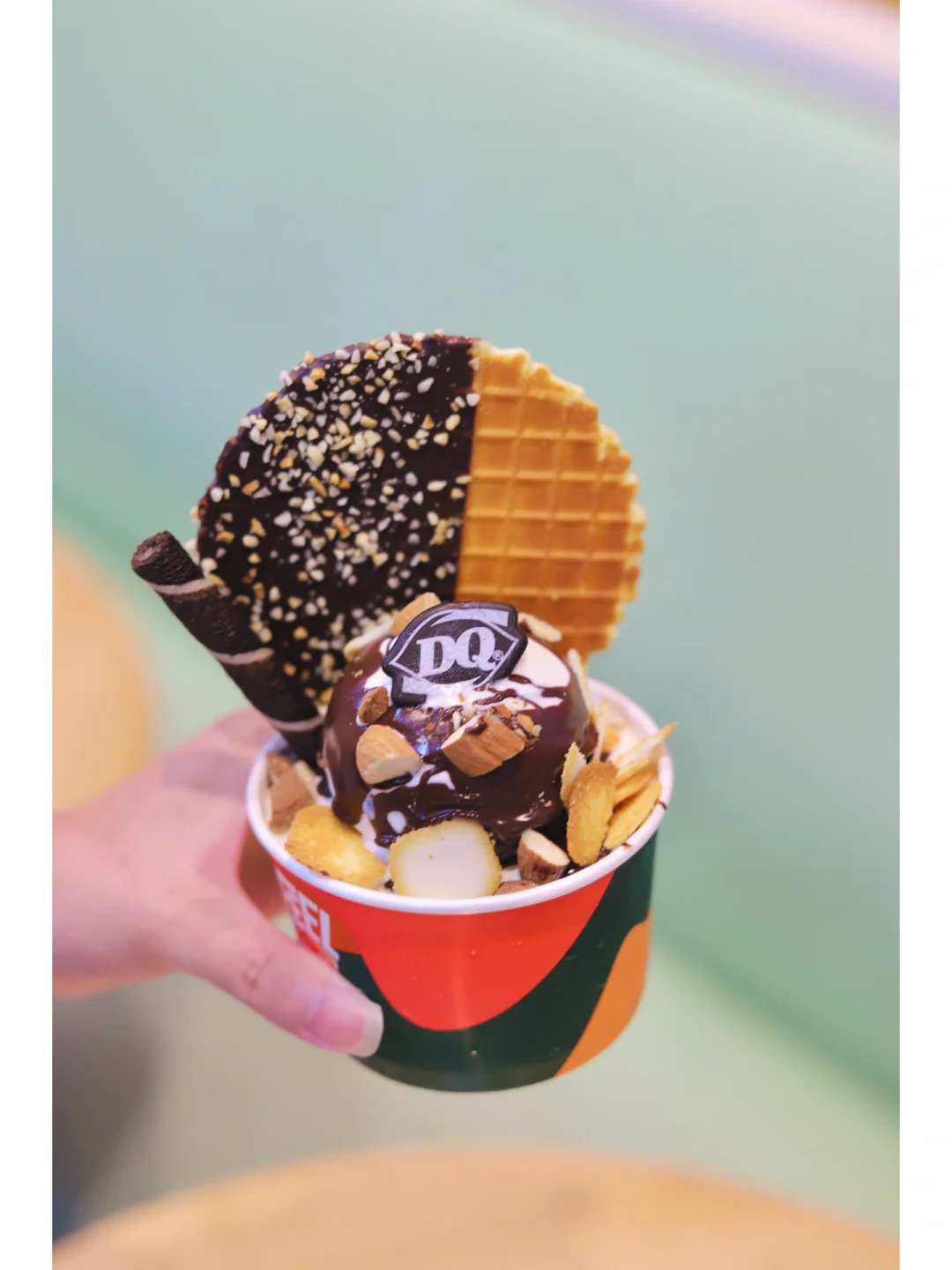 今天吃孔雀杯🦚发现它的配色和我的穿搭一样靓丽多彩 拿着它的时候自己就是个显眼包哈哈哈 比利时巧克力🍫口感好棒 喜欢里面的巴旦木果仁 小白杏开心果颜值好高 吃了开心一整天💞