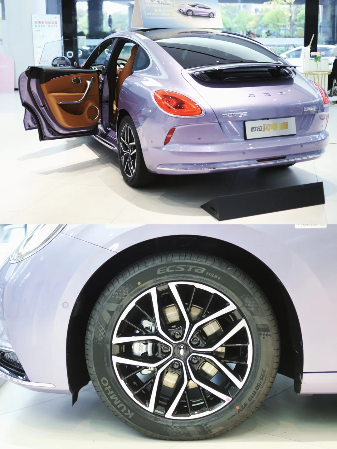 今天和朋友去提欧拉闪电猫🐱 这个颜值太戳我了🥹颜控真的没法拒绝 轿跑车型潮流感拉满 . 除了外型好看,它的内饰也深得我心 棕色皮革材质高级感十足 后排空间hen大 座椅💺也敲酥糊~ 还有一个敲大的化妆镜,哪个女生能拒绝啊😭😭 . 另外它的续航也不错 有555km、600km、705km 闺蜜提的是705km,终于可以实现自驾游了✌🏻️ 还有4.3秒百米加速 推背感强 起步快 先定一个小目标,明年全款拿下它💪 .
