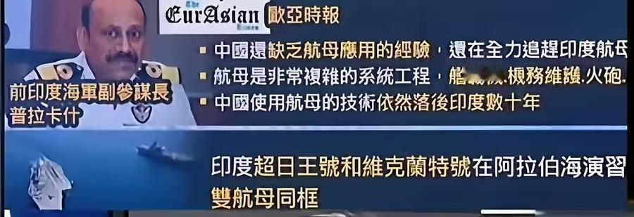 印度前海军副参谋长普拉卡什:中国航母落后印度10年!真是极度的羡慕,就让人心态扭