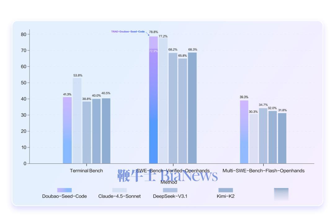 Doubao-Seed-Code面向Agentic编程任务进行了深度优化,在TerminalBench、SWE-Bench-Verified-Openhands、Multi-SWE-Bench-Flash-Openhands等多项基准测试中表现优异。