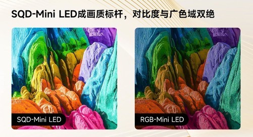 SQD-MiniLED这项技术的强大之处在于,从底层逻辑上彻底规避了RGB-MiniLED等“伪高色域”电视的问题。100%BT.2020全局高色域带来的不仅是超高水平的色域值,更是不管单色还是多色都能稳定显示的体验,真正从用户实际观影场景入手,提供最前沿高端的视觉效果。