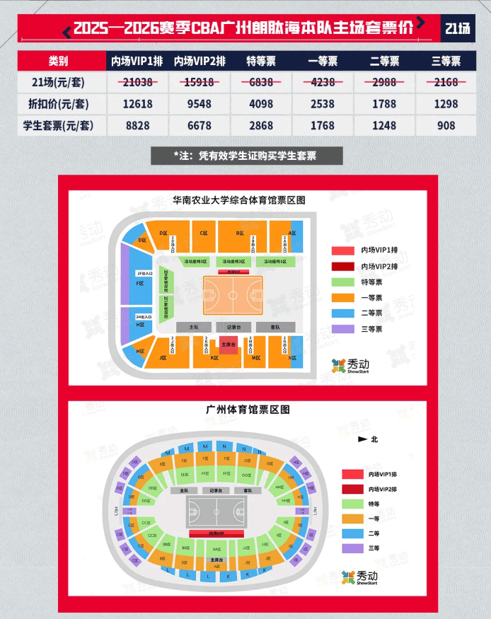 同时,广州男篮主场套票价也已公布,三等票折扣后为1298元。