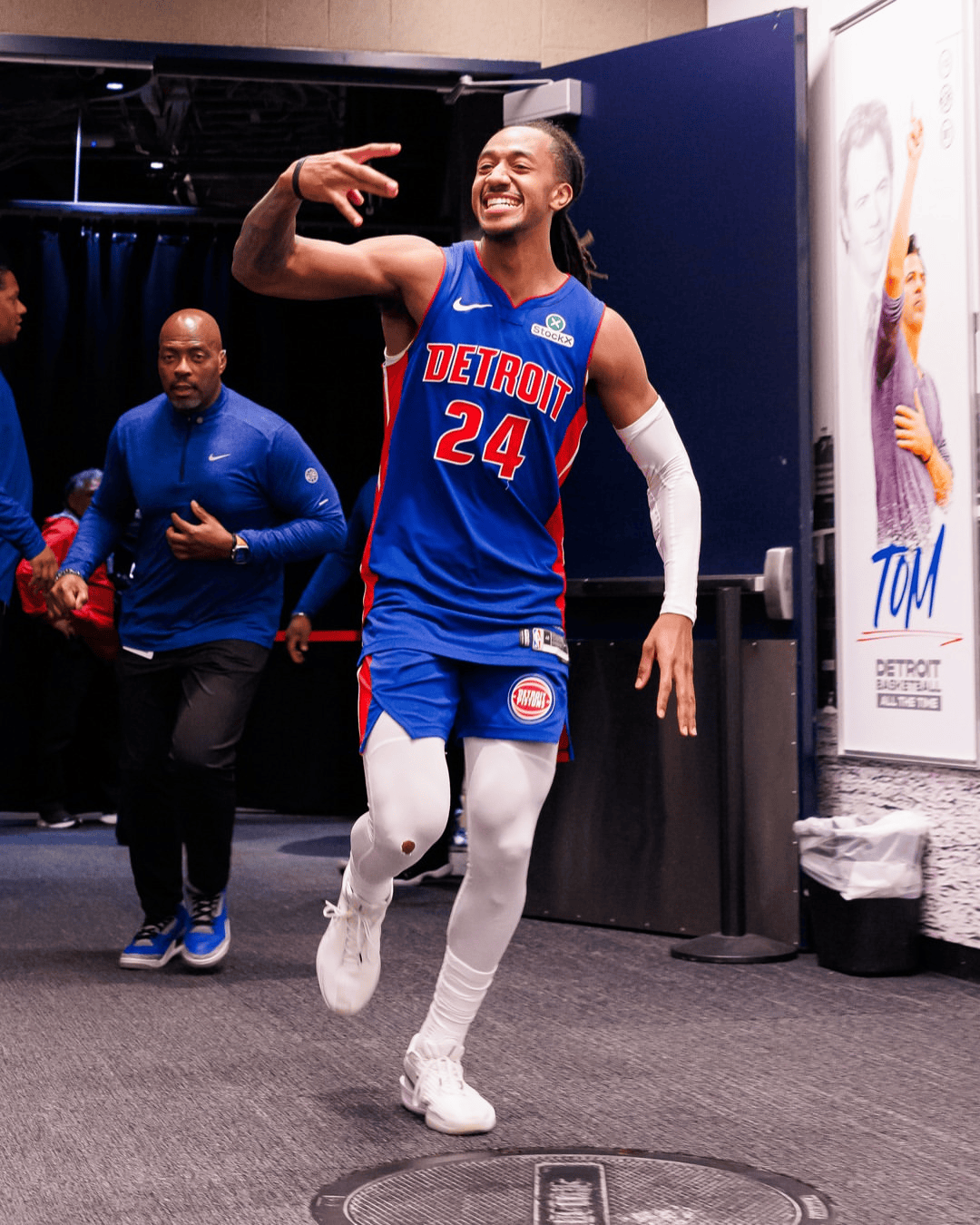 虎扑11月11日讯活塞官方更新ins,晒出了今日绝平功臣丹尼斯-詹金斯赛后庆祝的照片。