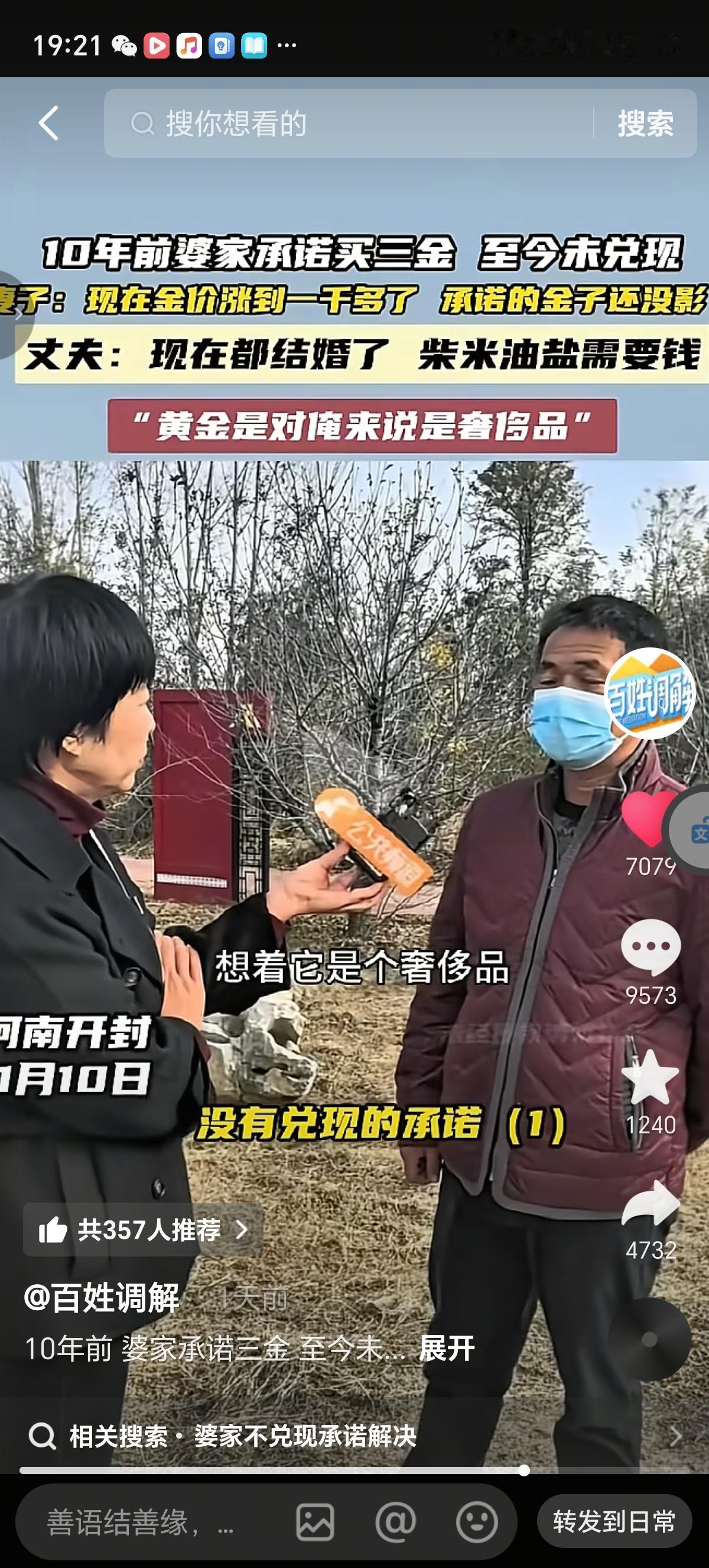 “我是头婚嫁二婚,当时婆家承诺的三金,说是结完婚以后,等他有钱了,慢慢买那比别人都大的。结果到现在10多年了,这个承诺也没有兑现,那时候黄金200多一克,现在都涨到1000多了。这个事情我越想越生气”,河南女子表示。 她的丈夫回应记者:“这个黄金咱过日子的嘛,想着它是个奢侈品,家里养孩子,柴米油盐,这都需要用钱的地方也很多”。 在河南开封,三金本就是订婚时男方该准备的传统聘礼,象征“情比金坚”的祝福,是明媒正娶的仪式感,也是给女方的一份安全感。10年前235元一克的基础金价,现在超过1千一克了,翻了好几倍。 当初对婆家来说随便应付的承诺,对妻子来说确是爱情的见证,是她最初放心嫁给丈夫的前提条件之一。丈夫迟迟不兑现承诺,仿佛是在嘲笑妻子当初的恋爱脑。 买不买三金在丈夫眼里不重要,人都娶回来了,孩子也生了,应该以过日子为重。在妻子眼里,买不买三金是爱情的承诺。如果不是为了爱情,那么她头婚的凭啥嫁给一个二婚的。村里其她的同龄女性都戴三金,她一个头婚的年轻姑娘偏偏嫁给一个二婚的男人,结果啥也没有,背地里恐怕没少被笑话。 三金已经成为了妻子的执念,丈夫不当一回事的态度,恐怕已经成了家庭不和谐的导火索。不知道以后妻子会不会因为他敷衍的态度让他后悔莫及。
