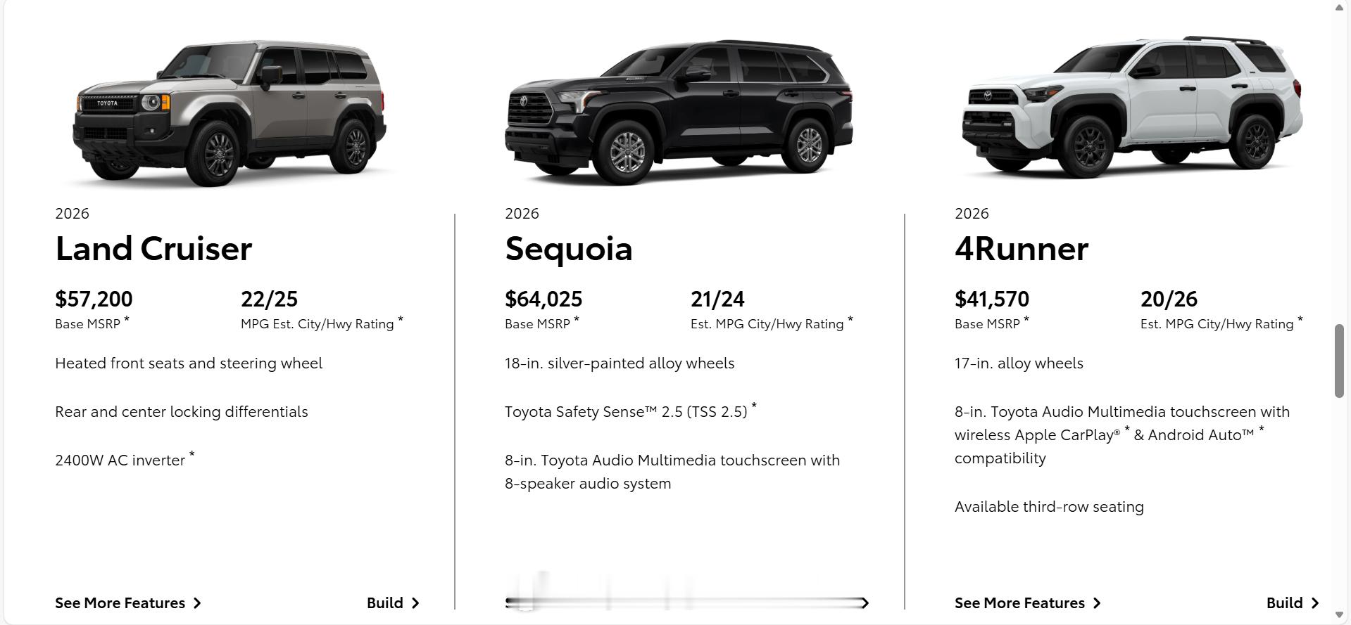 在美国,丰田汉兰达价格比大汉兰达贵,也比越野车4Runner超霸贵,普拉多当酷路