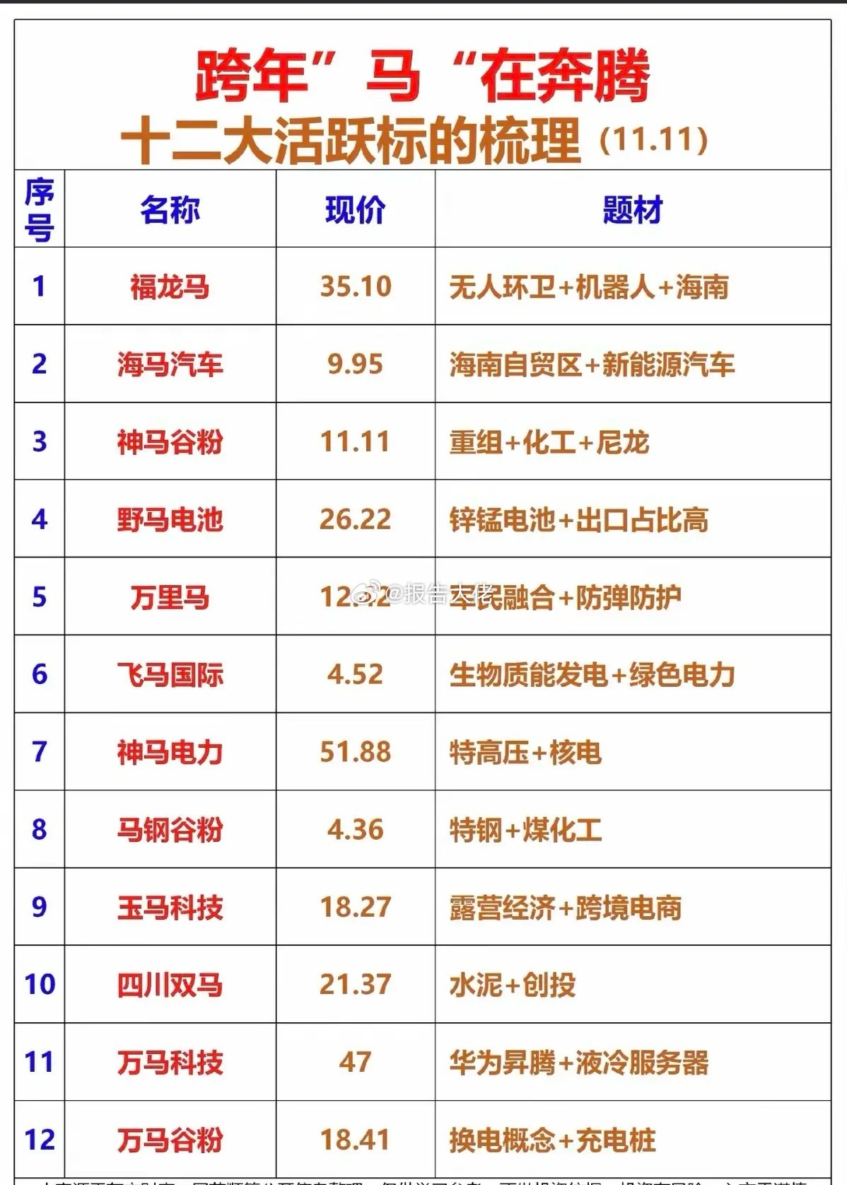 跨年”马“在奔腾 12股:成交活跃+题材!马字辈+题材+区域政策低位马百亿市值