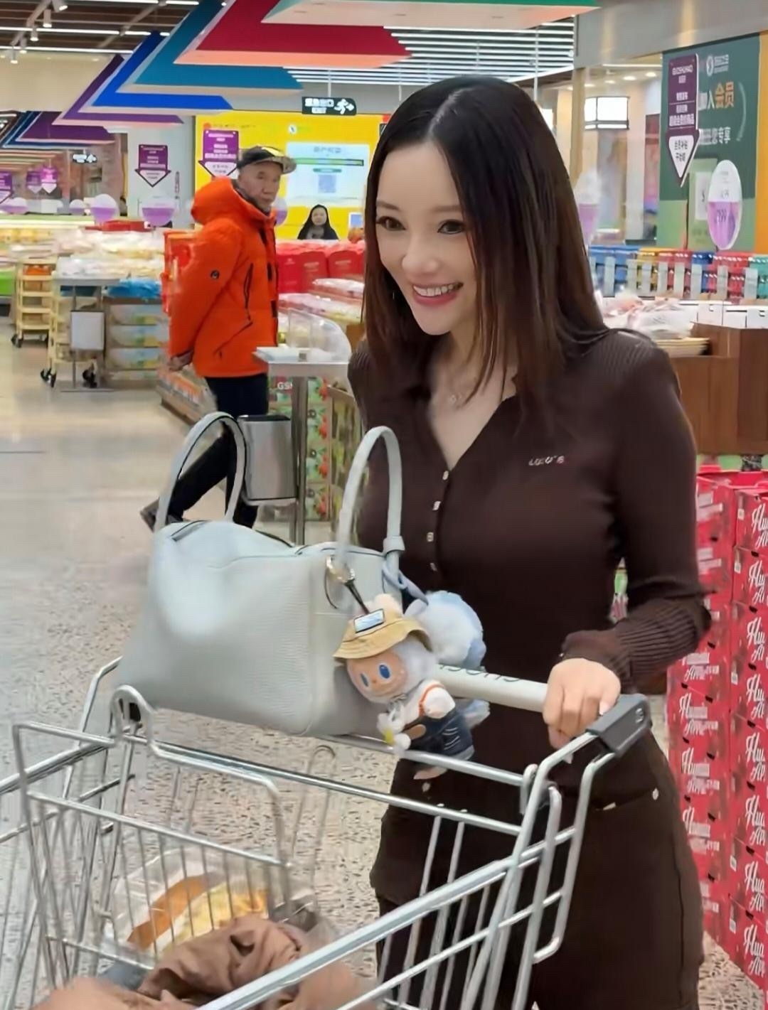 45岁李小璐到商场买菜,她的穿衣打扮好年轻,身材凹凸有致,皮肤超级白,好像大学生