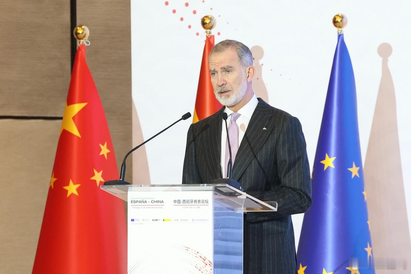 🇪🇸11月11日,费利佩国王在中国成都市的盛美利亚酒店(Gran Melia Chengdu)出席“中国-西班牙商务论坛”开幕式并致辞。