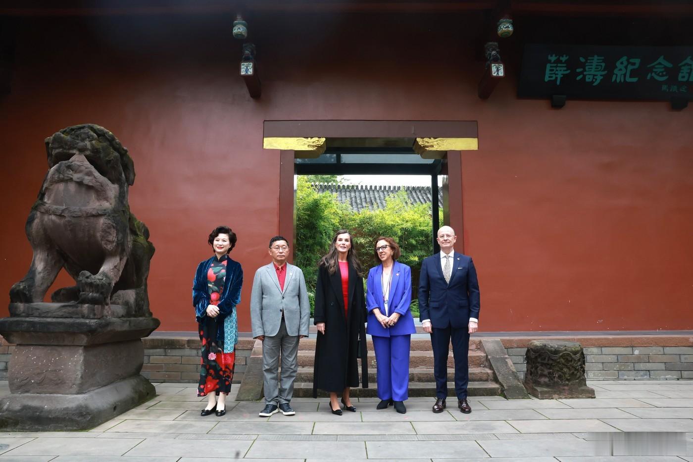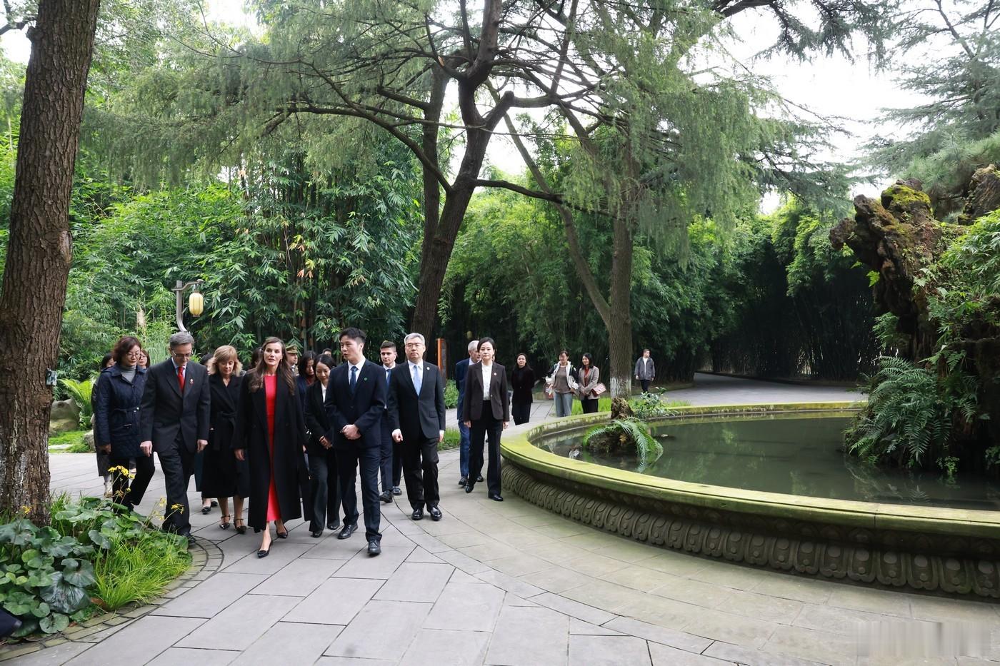 11月11日,莱蒂齐亚王后在中国成都市的望江楼-薛涛纪念馆出席纪念西班牙诗人安东尼奥·马查多诞辰150周年活动,并观看中国传统沏茶艺术品茶。成都市副市长陪同王后出席活动。 王后好美好优雅~