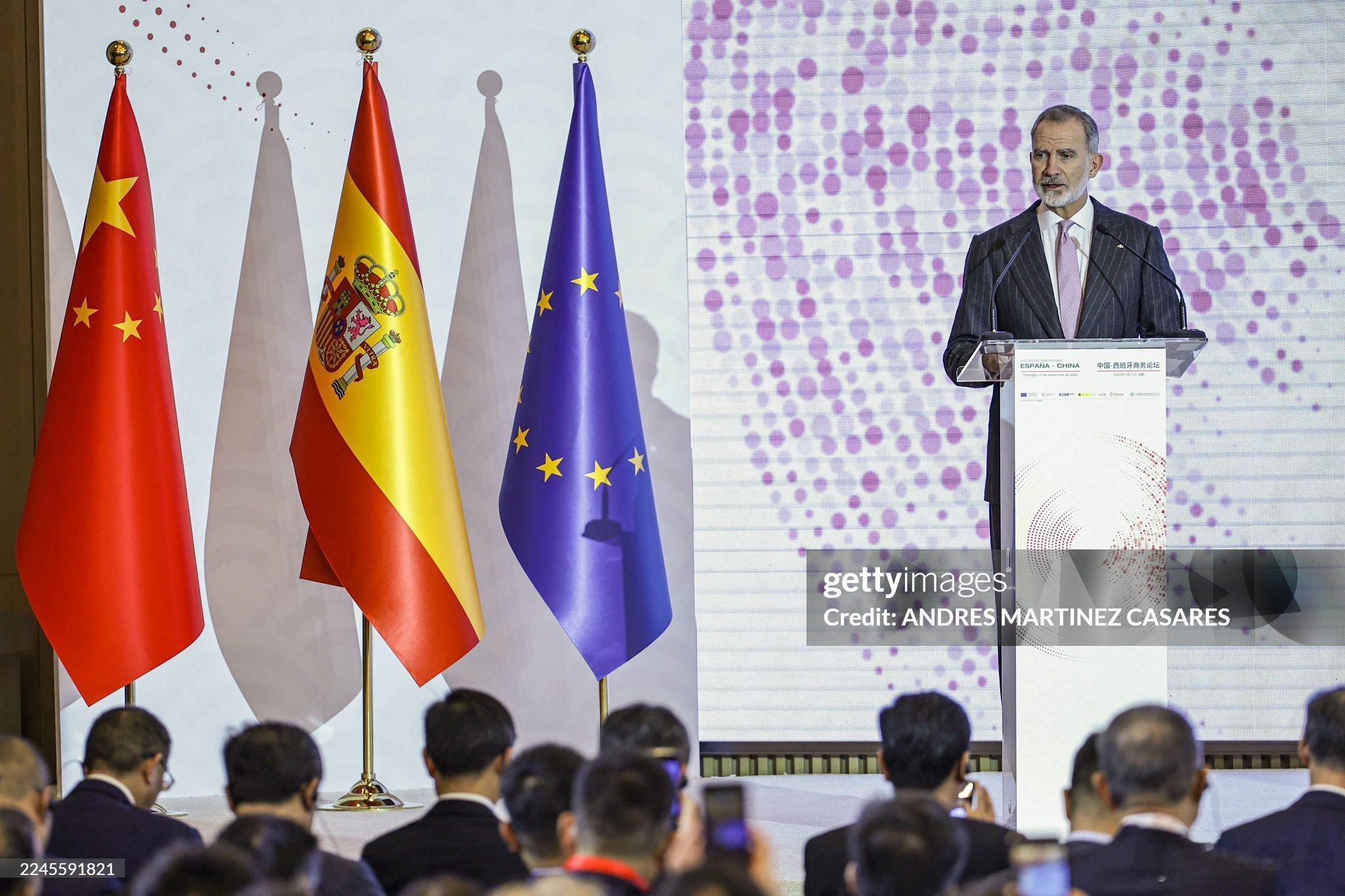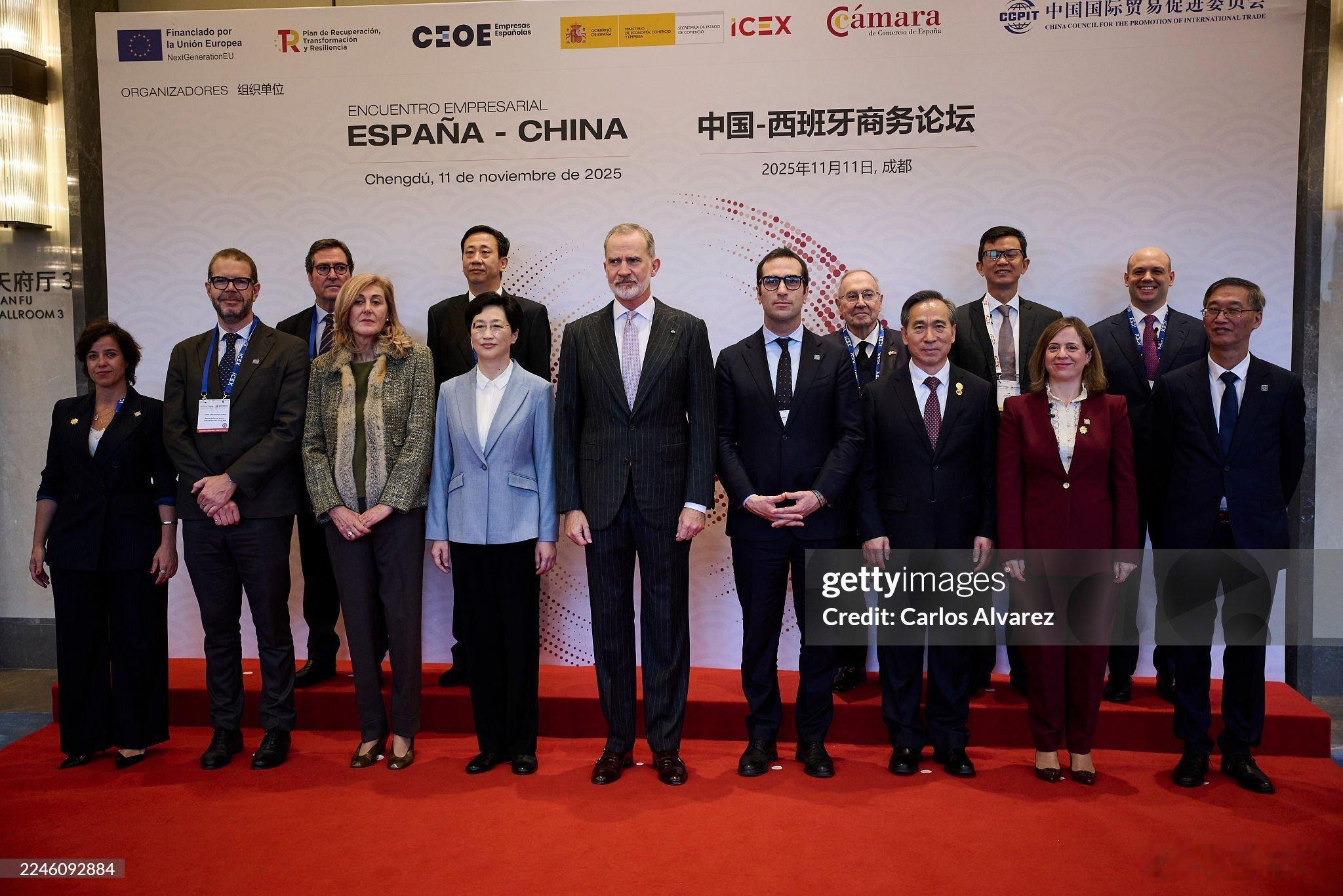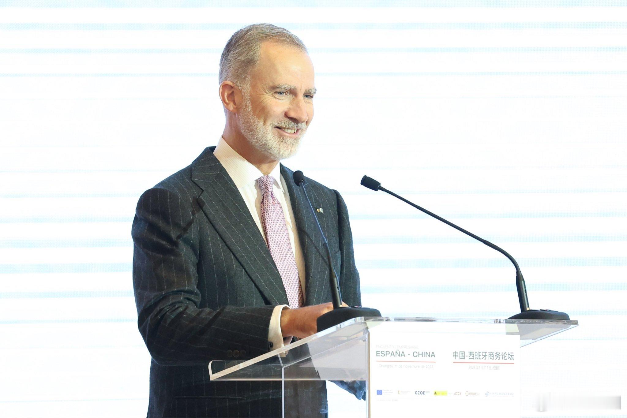 🇪🇸11月11日,费利佩国王在中国成都市的盛美利亚酒店(Gran Melia Chengdu)出席“中国-西班牙商务论坛”开幕式并致辞,四川省省长施小琳陪同出席。酒店坐落于成都市高新区锦城大道1555号,毗邻锦城湖公园,建筑融合蜀风汉韵与西班牙奢华风格,拥有265间客房。