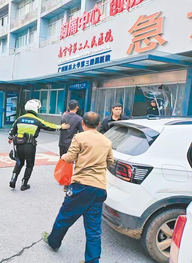 南宁交警将断指伤者护送到医院。(南宁市公安局交通管理支队供图)