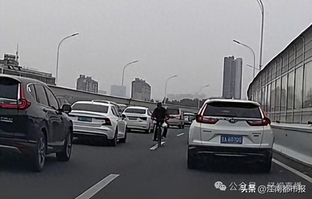 11月10日,多名网友发帖反映,在武汉市二环线雄楚大道高架及鹦鹉洲长江大桥武昌往汉阳方向路段,有一名男子骑自行车逆向行驶。视频画面显示,该男子在高架道路中央缓慢骑行,神情镇定,导致多辆机动车不得不减速避让。