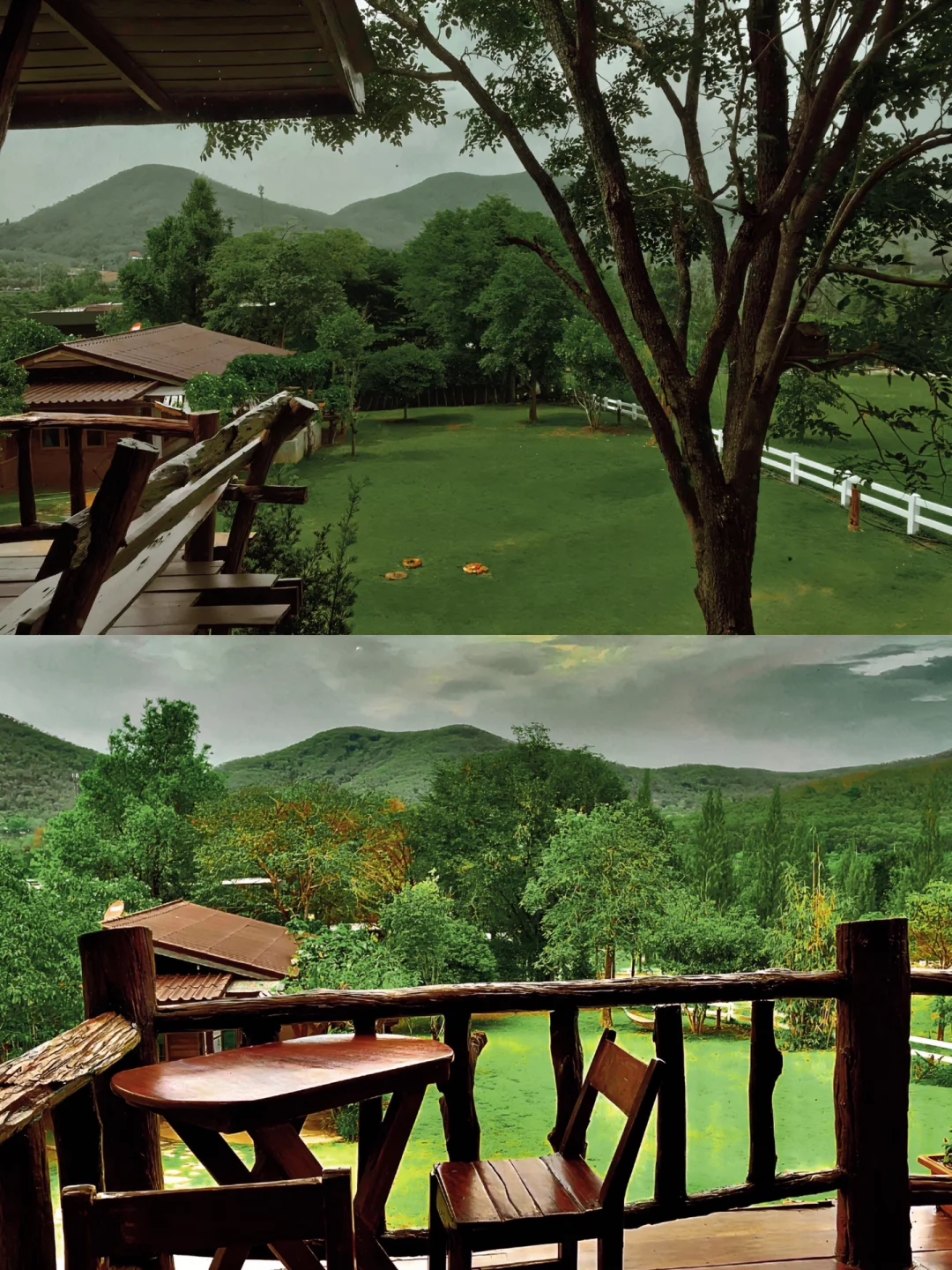 ▪️ 木屋周边的景色真的太美了,周围被山林环绕,满眼望去都是翠色