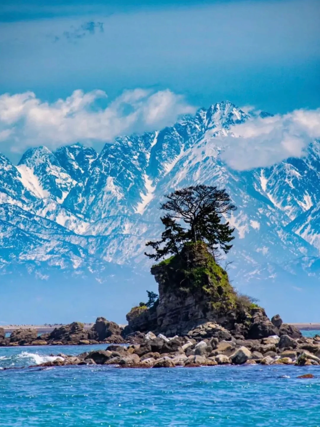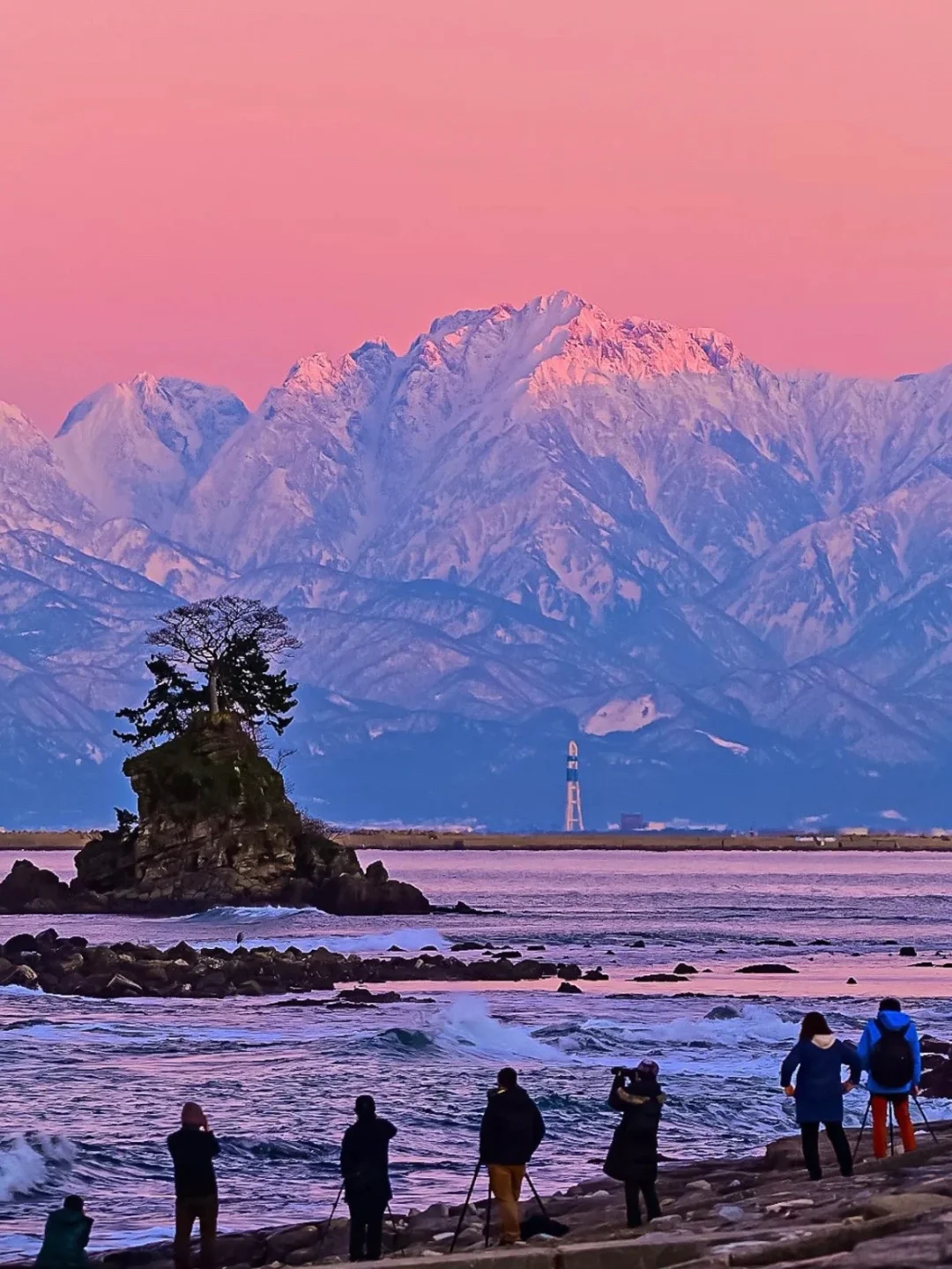 ▪️ 白色沙滩,绿色松林绵延的海岸线,从海岸还可以看到富山湾前方的立山连峰。此外,这里还是拍摄日出的好地方~经常可以看到非常多专业摄影师的身影~
