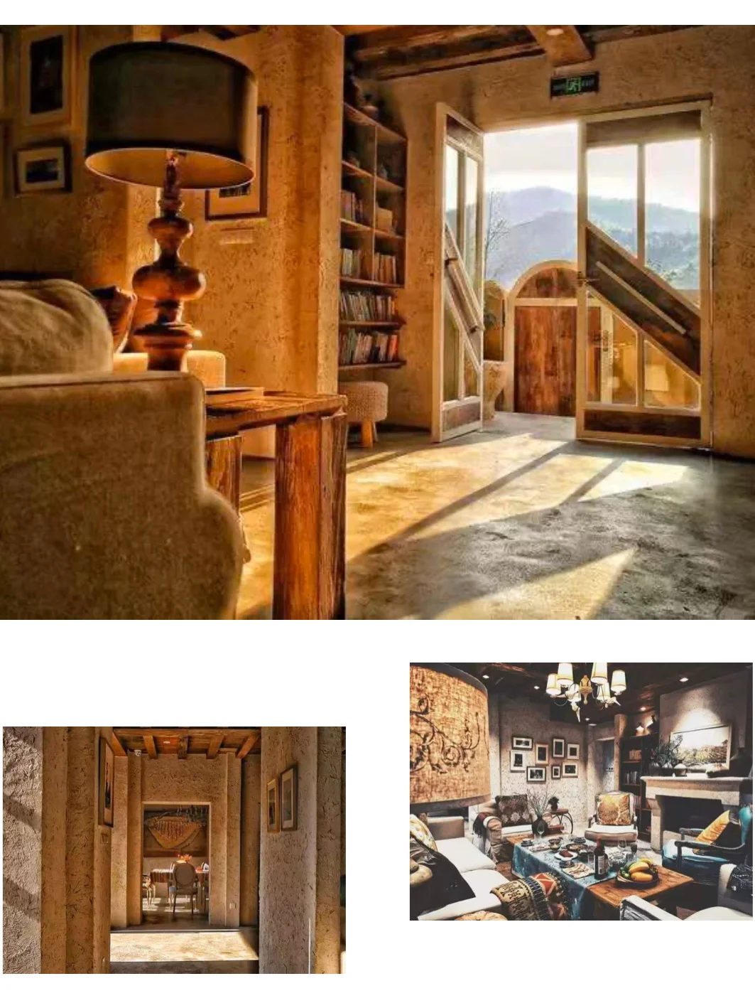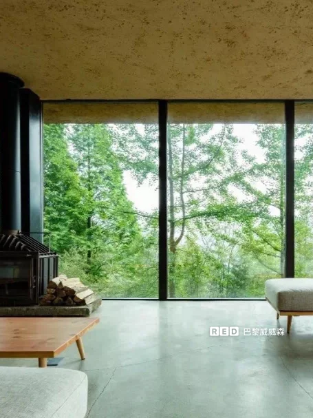 而室内则被两种墙体组合出具有层次感的空间,一种是夯土与稻梗混合而成的,一种是洞石碎片式拼凑而成。