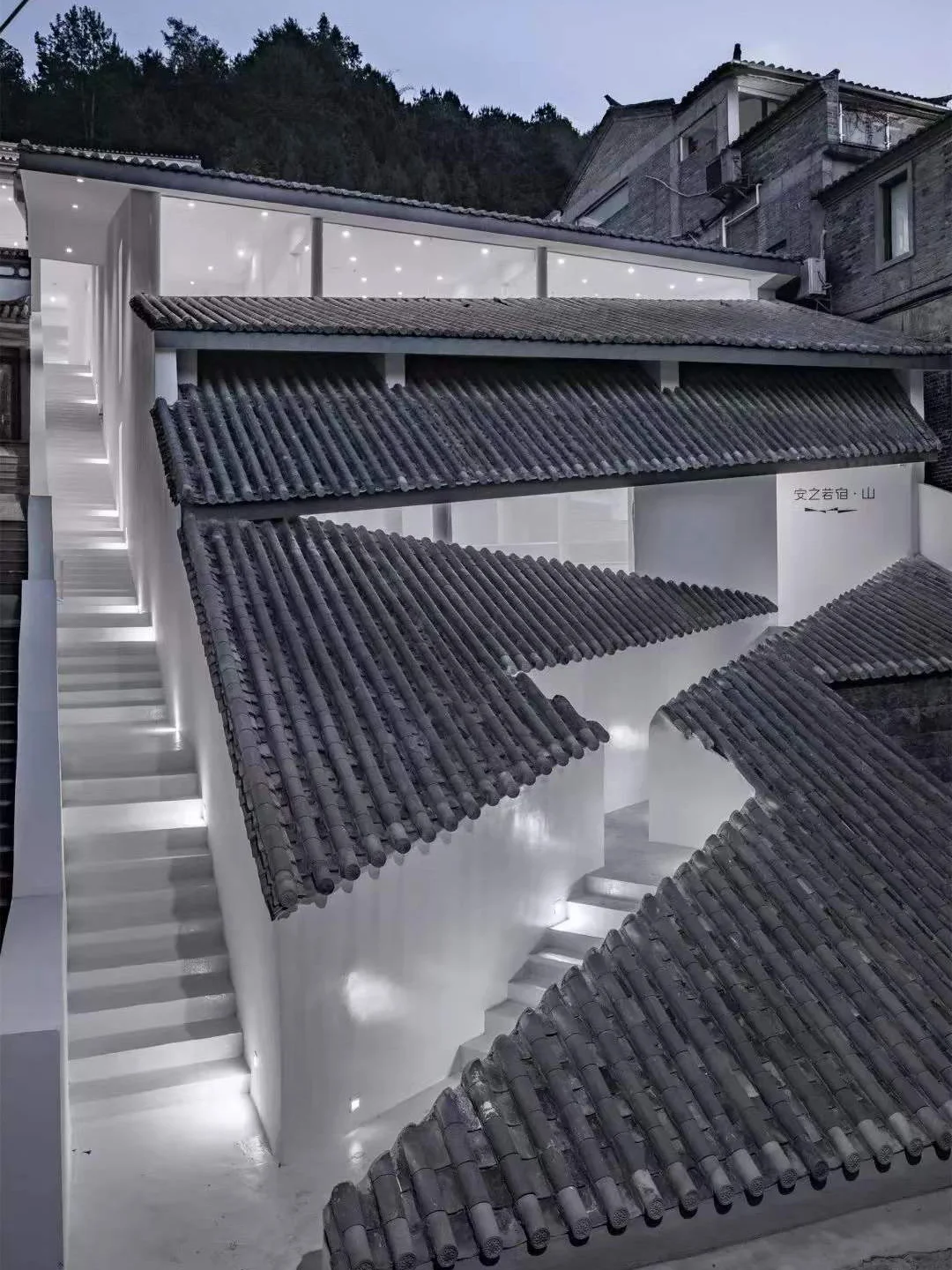 室外将石径重新制入谭家栖巷,不仅有江南小桥流水青石板的传统印象,还融入了线条与艺术的城市审美。