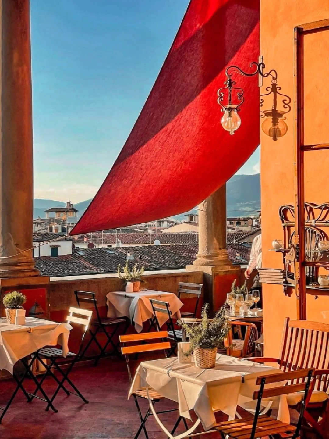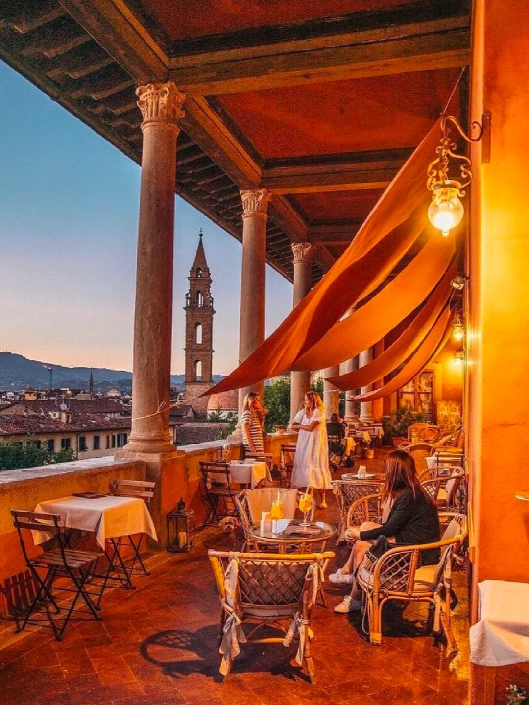 Loggia 屋顶酒吧浪漫而轻松的氛围非常适合在佛罗伦萨的伙伴前来打卡,坐在红色屋顶上欣赏日落还能俯瞰 Santo Spirito 广场,酒吧的凉廊是佛罗伦萨历史最悠久的凉廊,时至今日仍是佛罗伦萨奥尔特拉诺的地标之一,屋顶只有四层楼高,但是依旧可以看到这周围的很多景色
