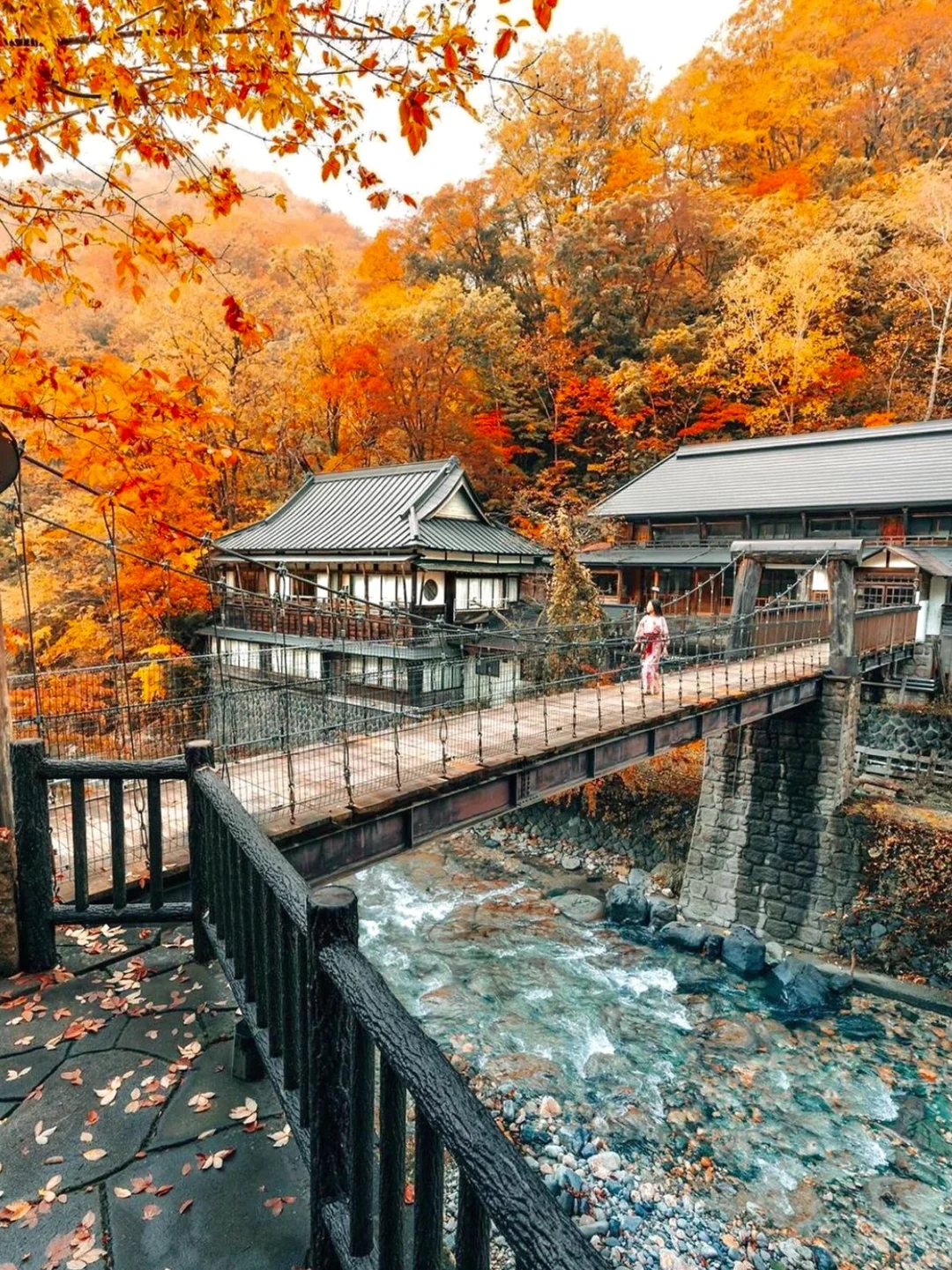 🔹温泉位于深山之中,景色仿佛动漫,这里从东京出发需要三小时左右,因此也是很多人周末度假的不二选择