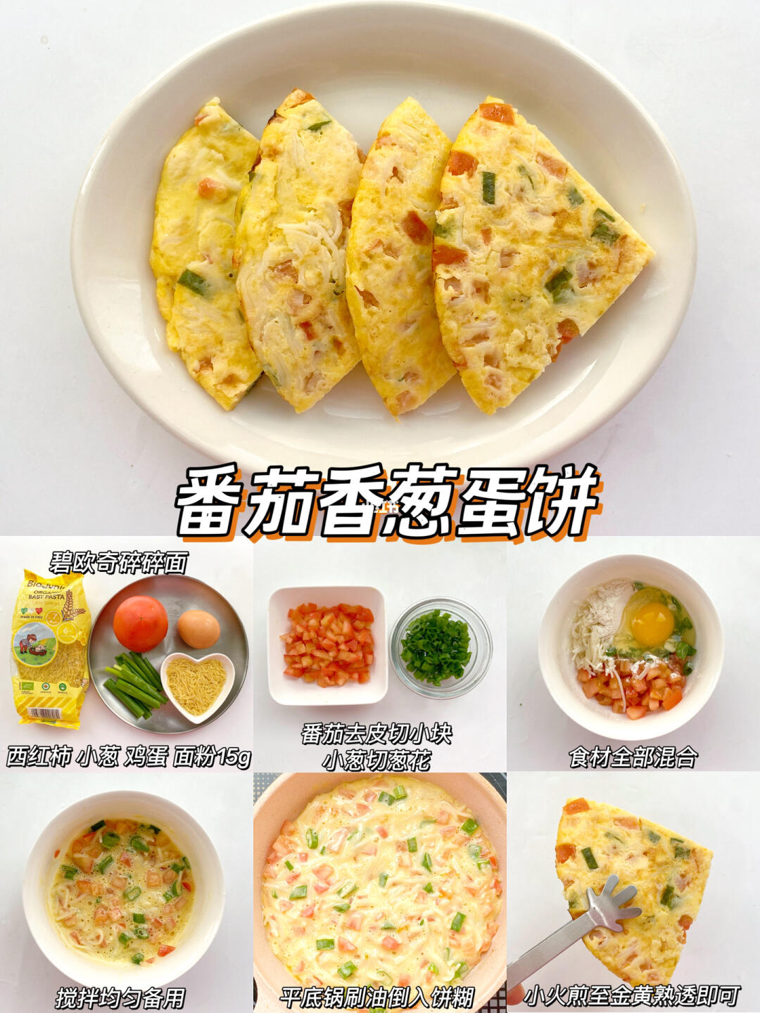 🥞我们家早餐喜欢吃各种各样的蛋饼,平底锅一煎,简单快手又营养。今天用宝宝吃的碎碎面做了蛋饼,口感上更加软嫩,适合宝宝咀嚼,搭配上多样的蔬菜,就是元气满满得早餐呀~