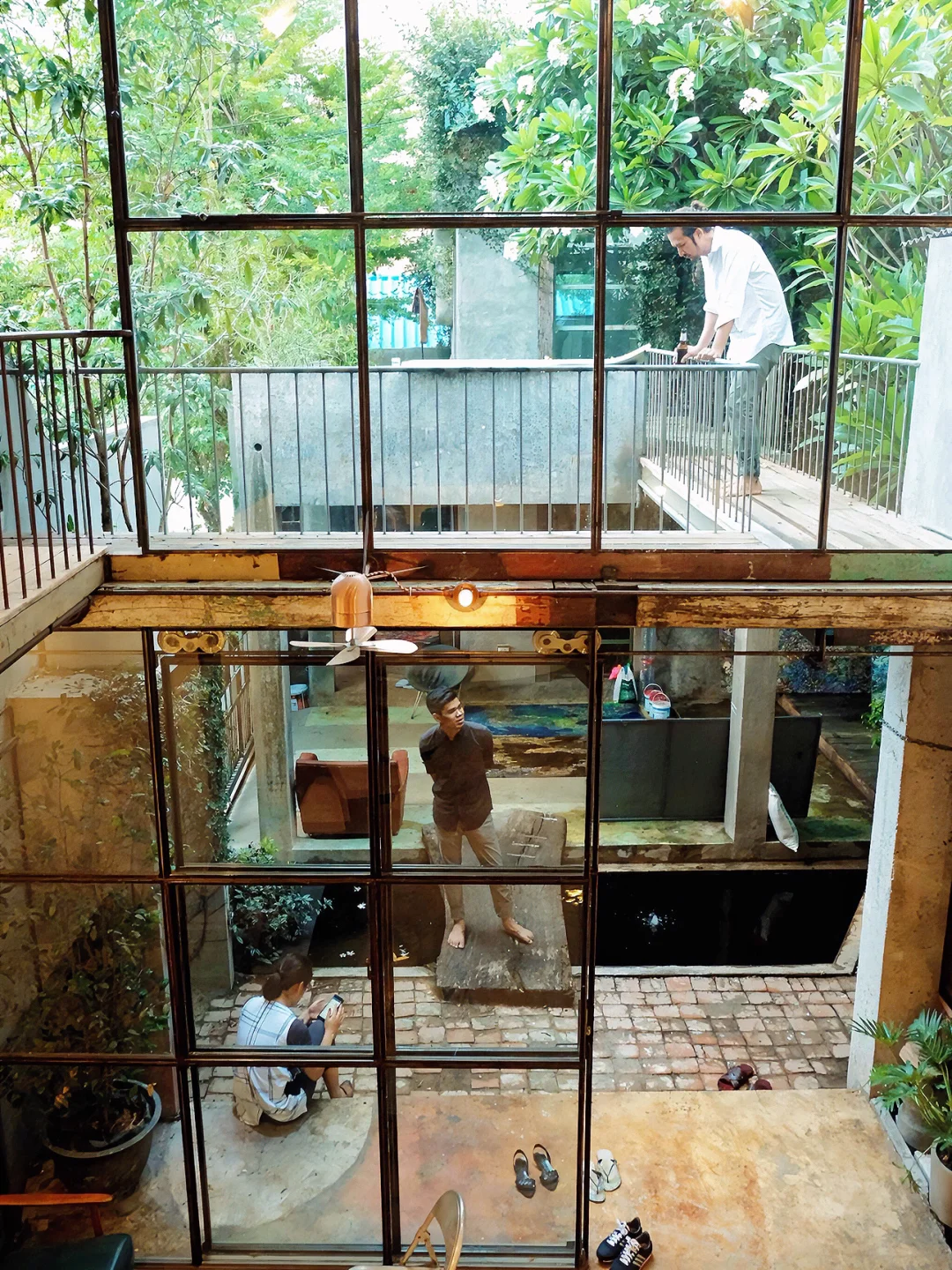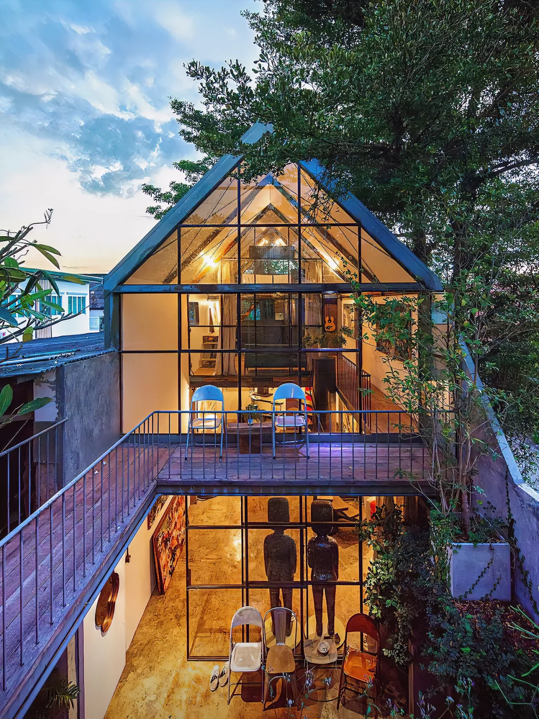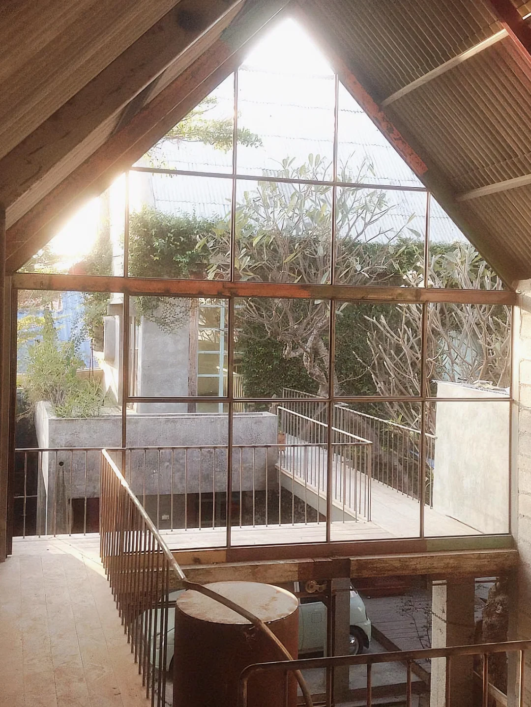 ▪️ 房子用一些回收材料、油画、雕塑和后院的大树装饰,整个装修风格比较工业风