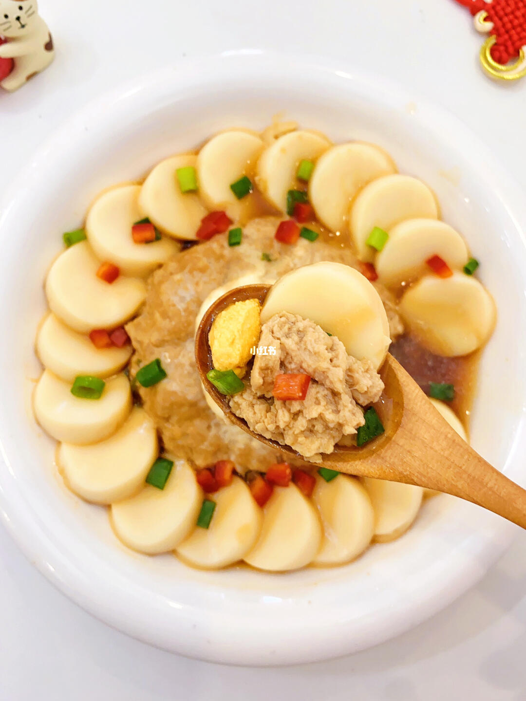 🧧年夜饭一定要做这道肉末豆腐蒸蛋呀,好看又好吃❗️玉子豆腐口感嫩滑,肉末蒸蛋咸香鲜美,寓意蒸蒸日上☀️~