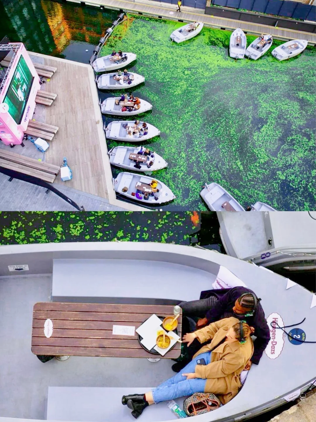 ▫️ 船上还有个二维码菜单,只要坐在躺椅或船上,扫码订餐就能送到座位上啦,活动是哈根达斯发起的,所以还有免费的冰淇凌可以吃