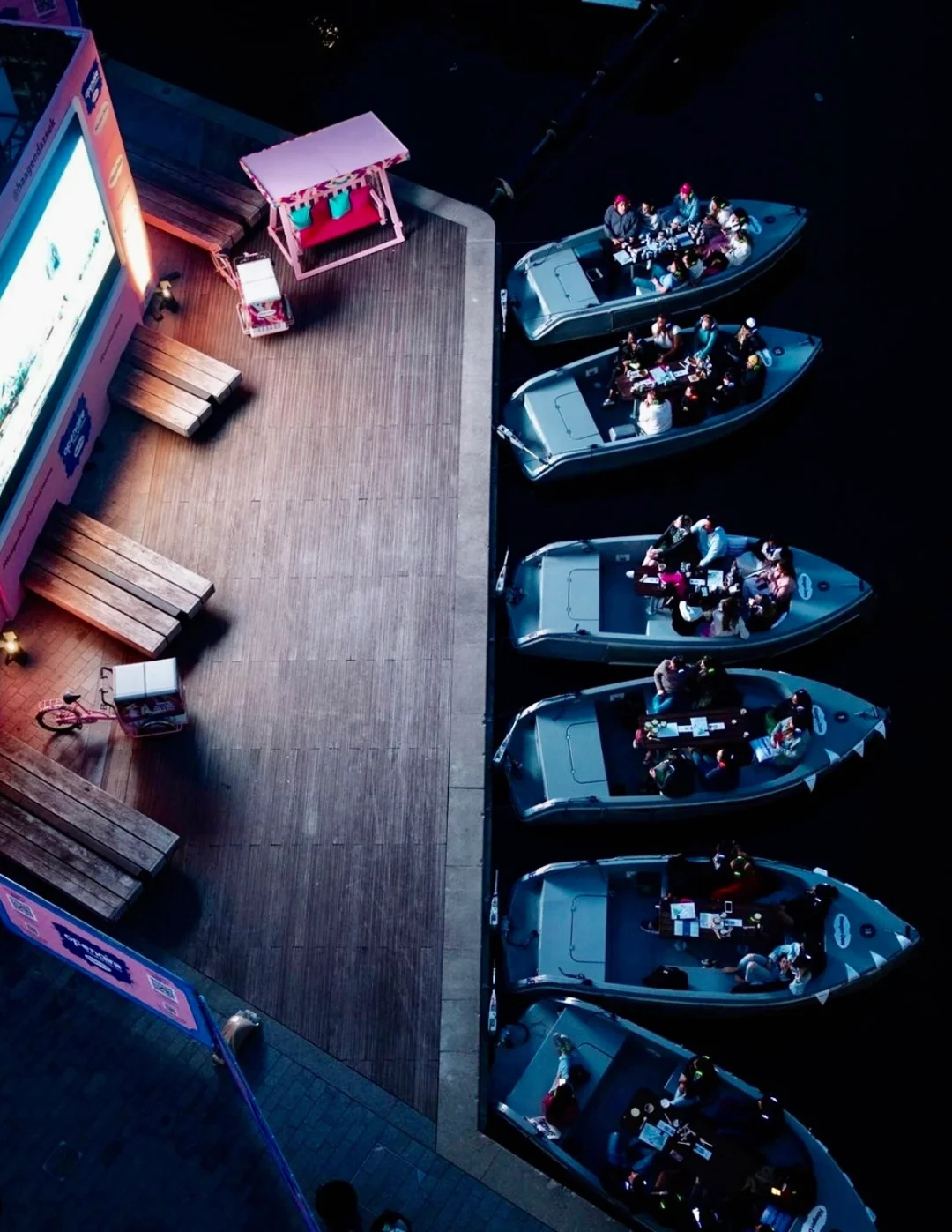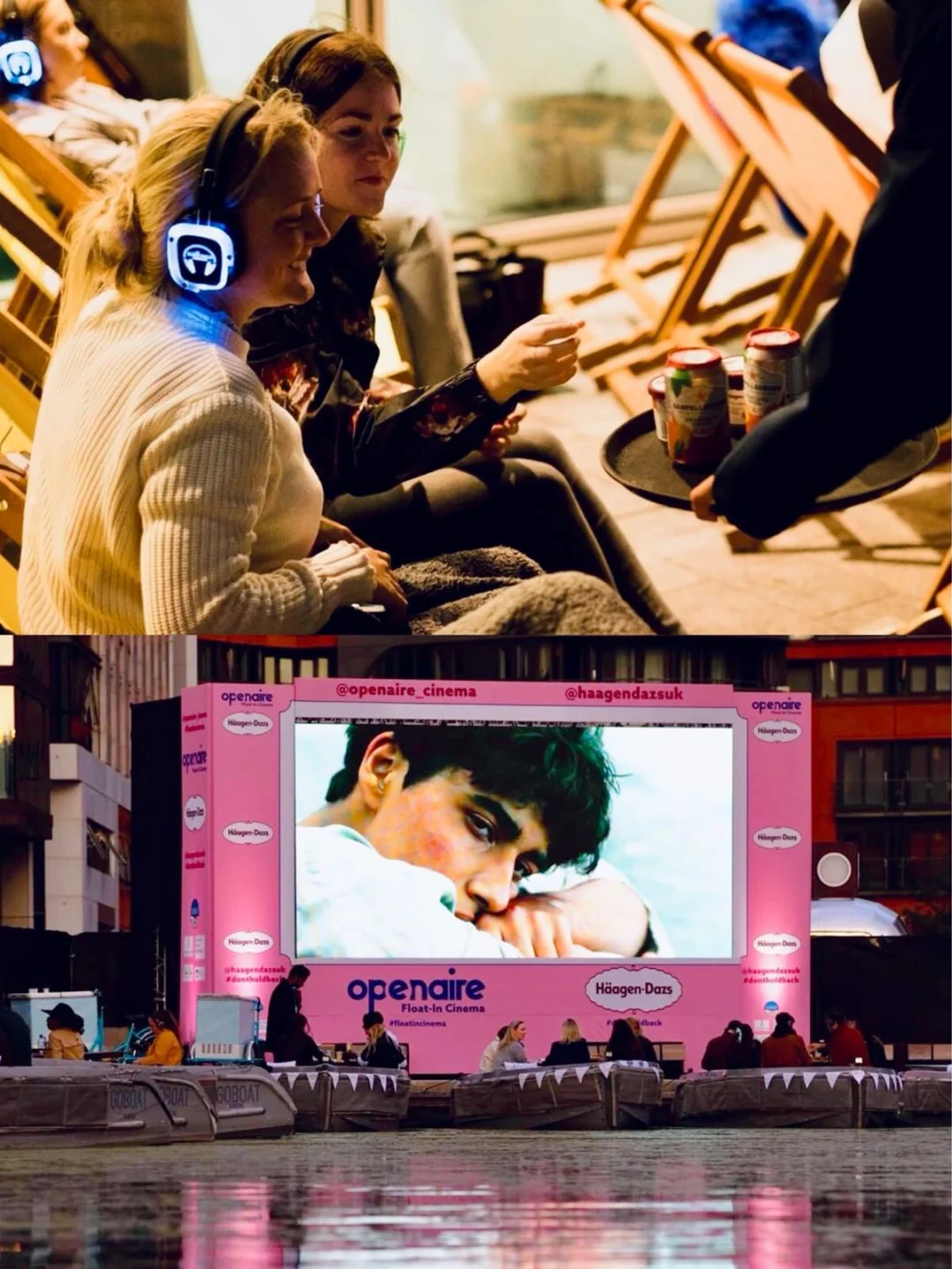 ▫️ 每场电影开放16艘船,每船6人,每艘船可加座2人,需额外支付每人27.5英镑。怕晕船或抢不到船票的话,岸上还有100个躺椅观影座,票价为每人16.5英镑🚤