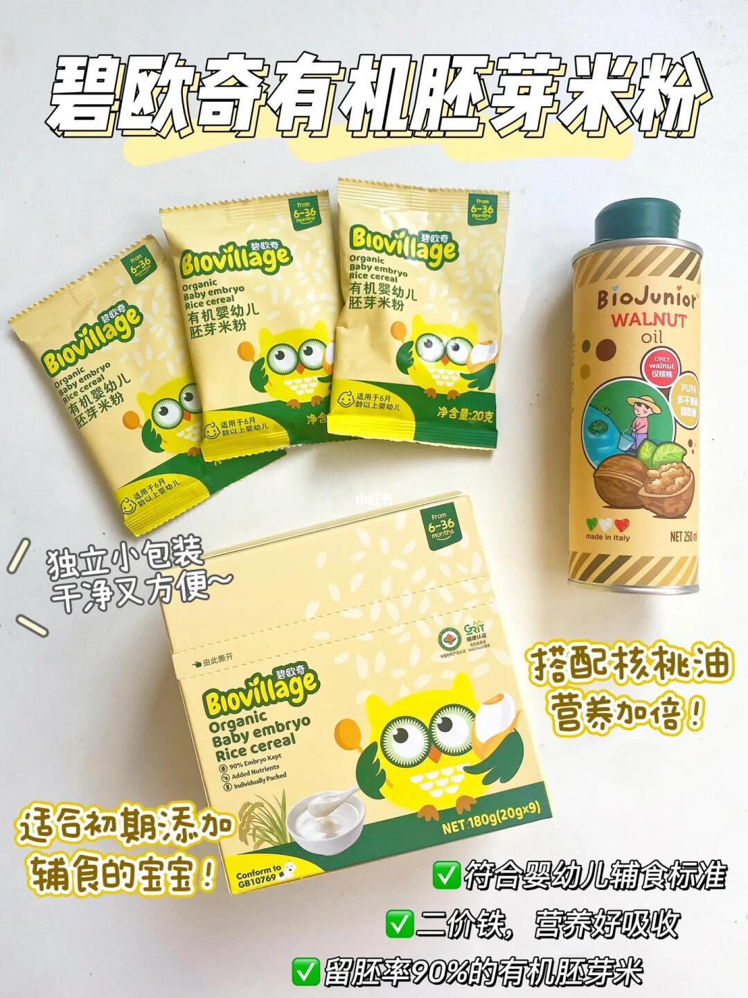 🌈我家娃吃的碧欧奇有机胚芽米粉,二价铁含量高,宝宝更易吸收。原料为胚芽米,胚芽米保留了 80%全谷物营养,普通大米仅保留了6%左右的全谷物营养。