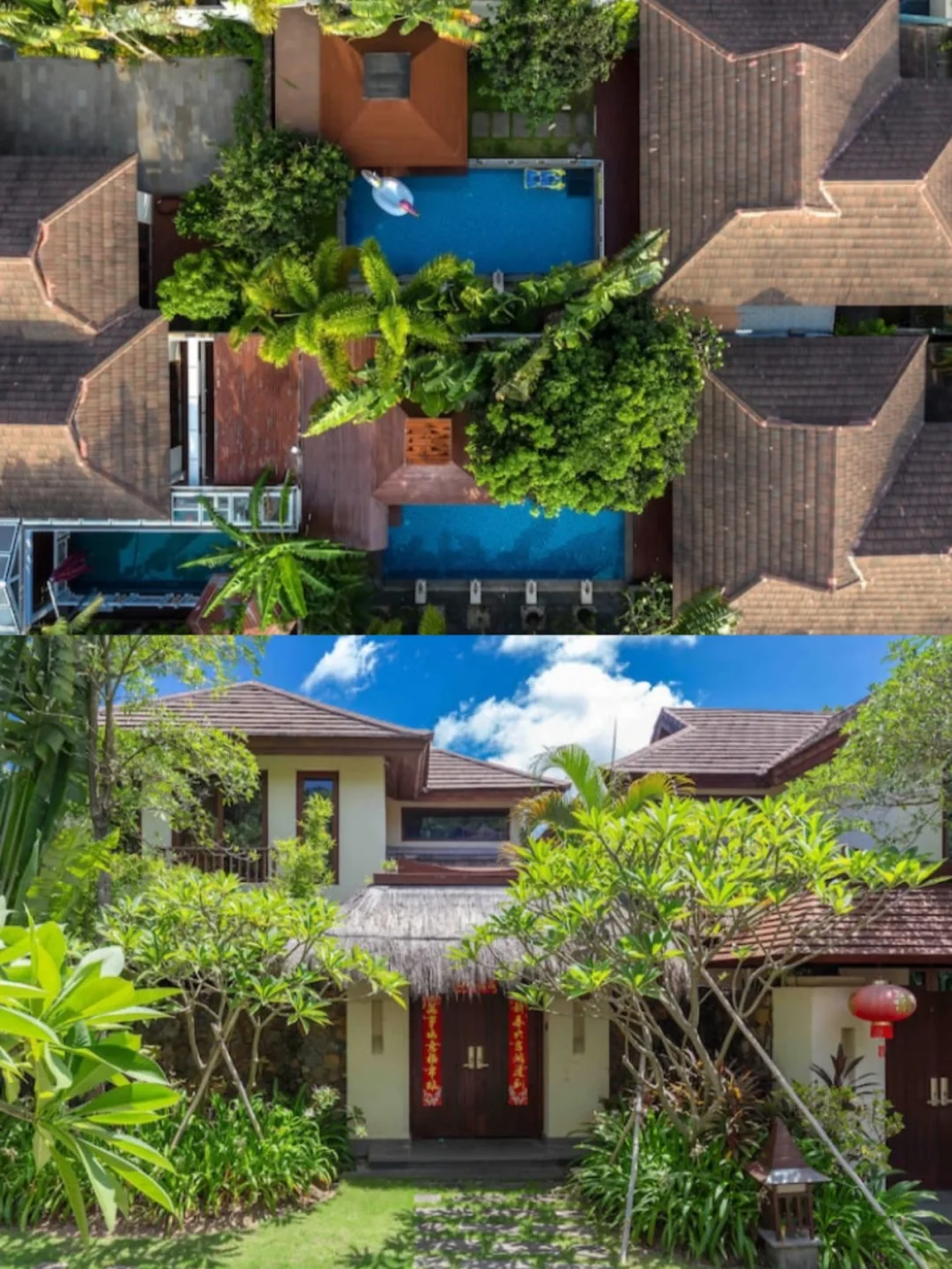 巴巴今天在三亚参加GQ活动 身着Luisa beccaria紫色玫瑰长裙 不得不说,巴巴很适合这样明艳大气的装扮 看得我想去三亚拍照度假了 在上看到了三亚一家叫 隐墅 的别墅,确定这不是巴厘岛,普吉岛吗? 激动的我立马下单预定了 可以美美的去三亚租跑车拍同款了 民宿在图678 - 名字:隐墅 亚龙湾热带雨林泳池别墅 预定方式可住四个人 去海边玩,我一定要住别墅 Airbnb 满足了我 这家民宿离海边也很近,卧室很大朋友一起租感觉很划算