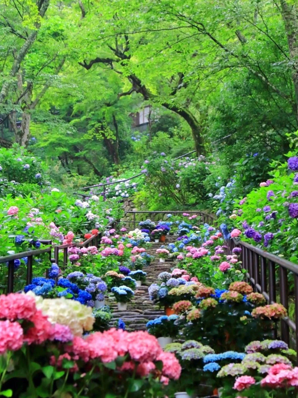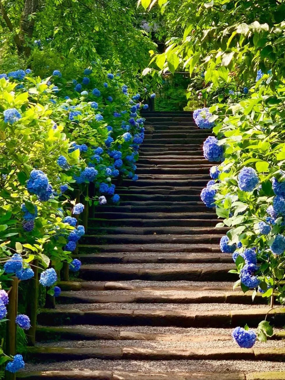 被人亲切地称为“绣球花寺”的明月院一定不容错过,每年一进入六月,约2500株的绣球花一齐绽放,而这些绣球花绽放时的浅蓝色则被称为“明月院蓝”。