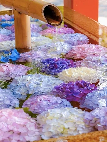 鹤冈八幡宫位在镰仓市中心,作为镰仓的象征深受民众喜爱。到了六月,紫阳花手水舍,如梦似幻,值得一逛~