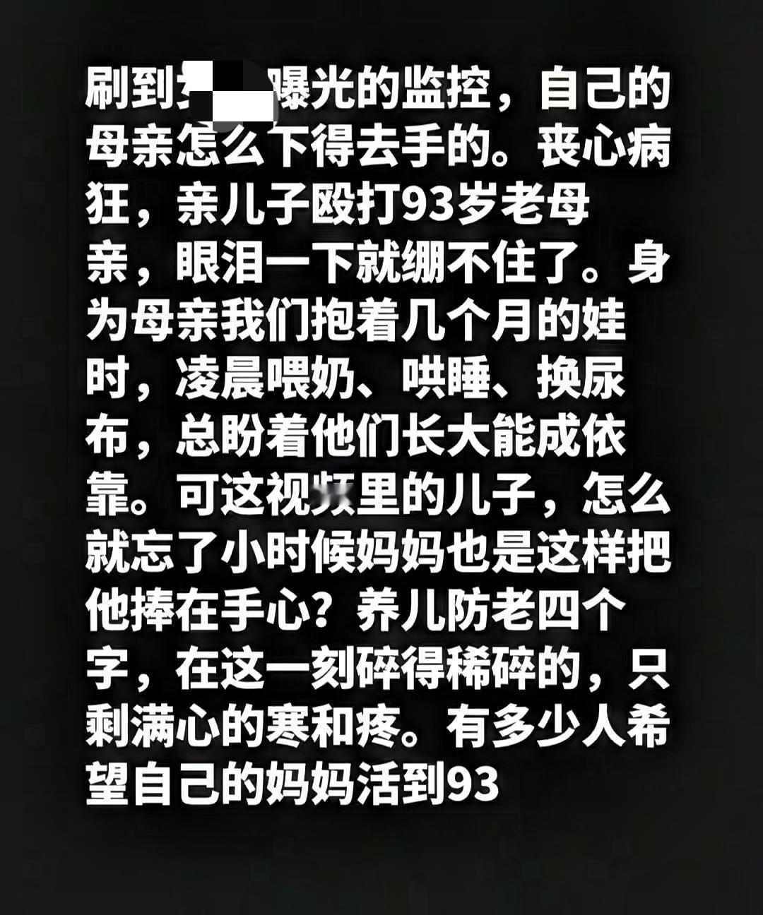 监控拍下令人发指的一幕! 男子竟对93岁老母亲下狠手, 这真的是“家事”吗?视频