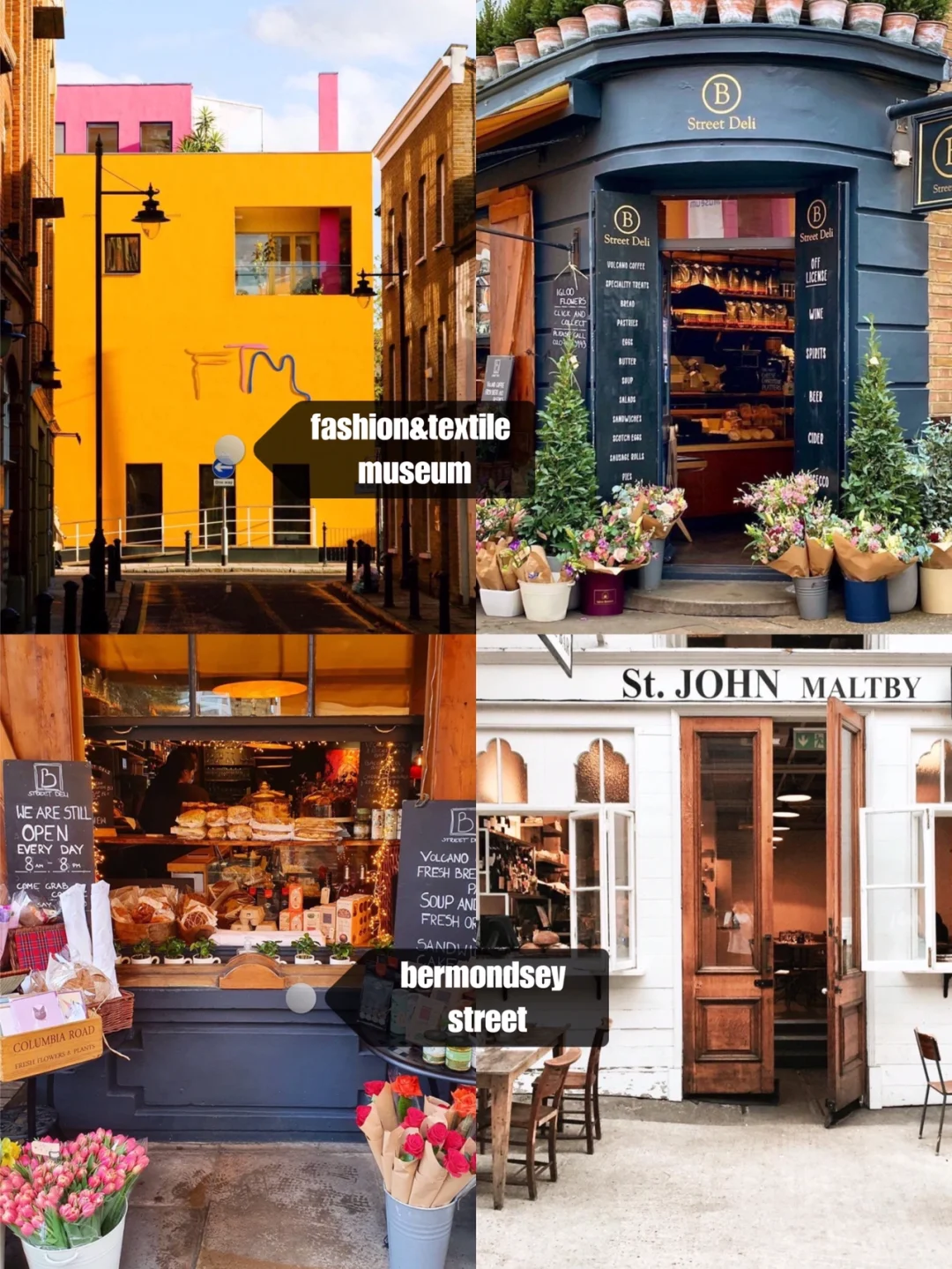 ▪️【 Bermondsey stree】:🚶♀️几分钟可达,这里有很棒的咖啡馆和餐厅,著名的white cube画廊、fashion&textile museum。吹玻璃工坊等等