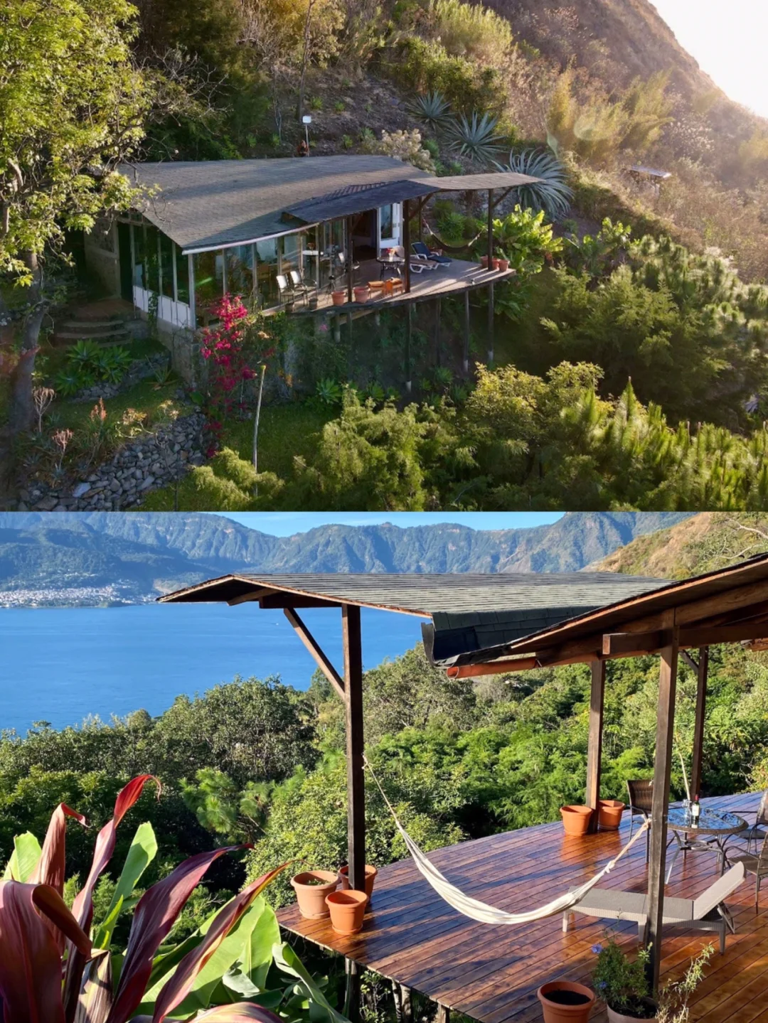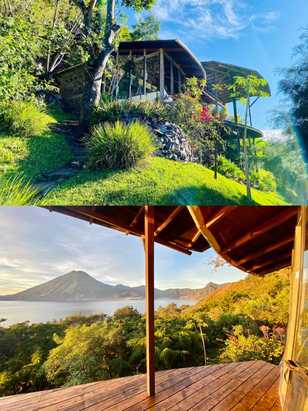 ▪️小屋坐落在危地马拉Lake Atitlan的上方,位于San Marcos和 Tzununa 之间,风景绝美!