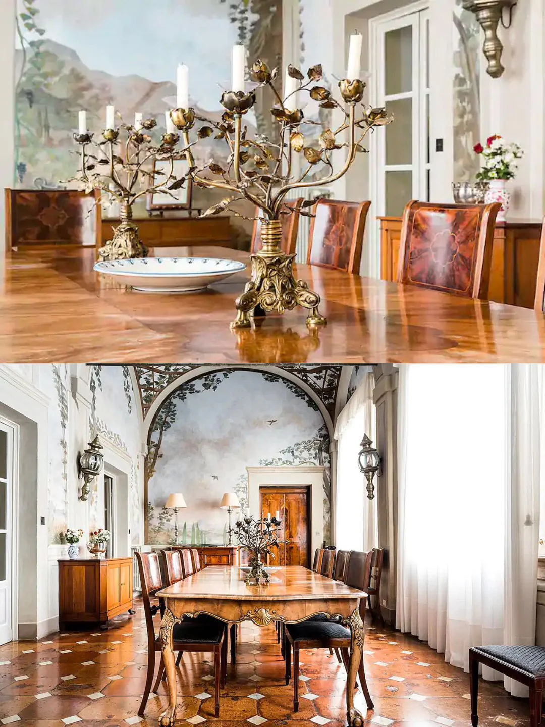 ▪️ 明亮的托斯卡纳厨房和错视画格子下的餐桌,让美食更添仪式感