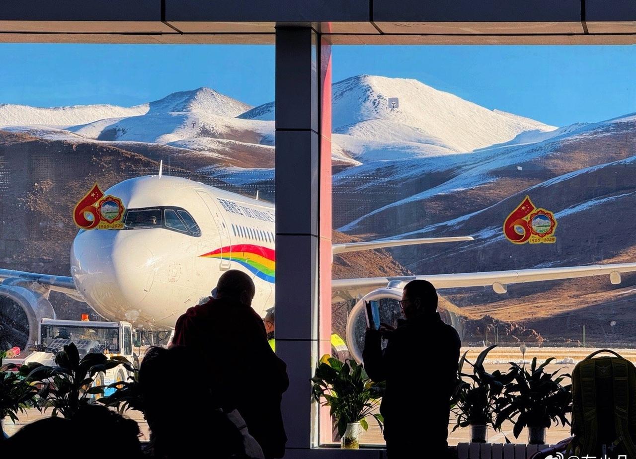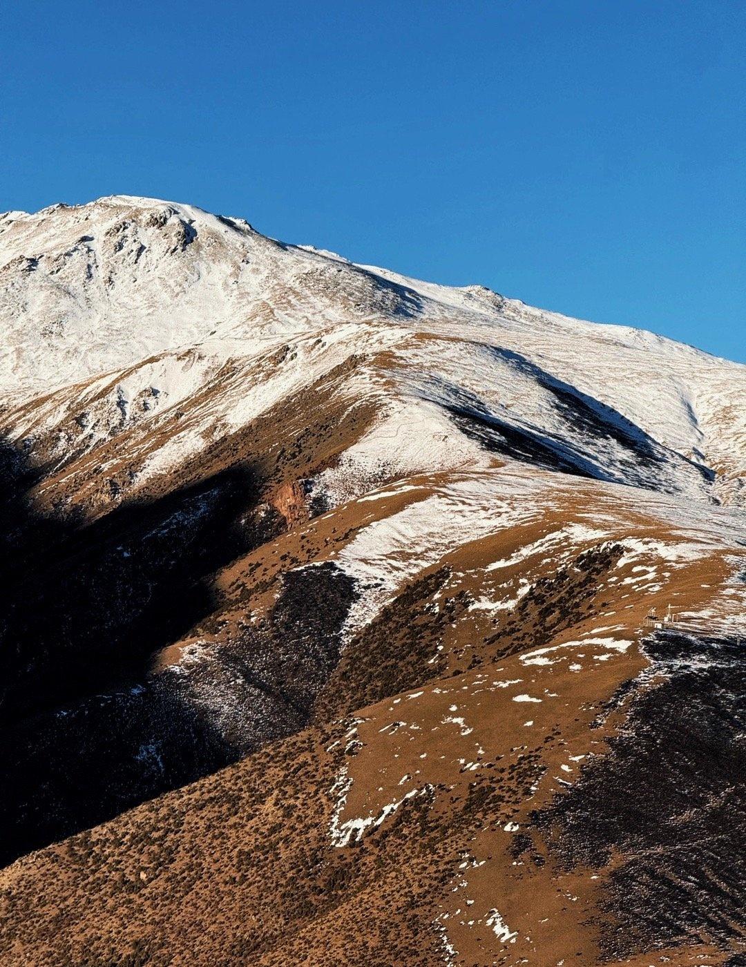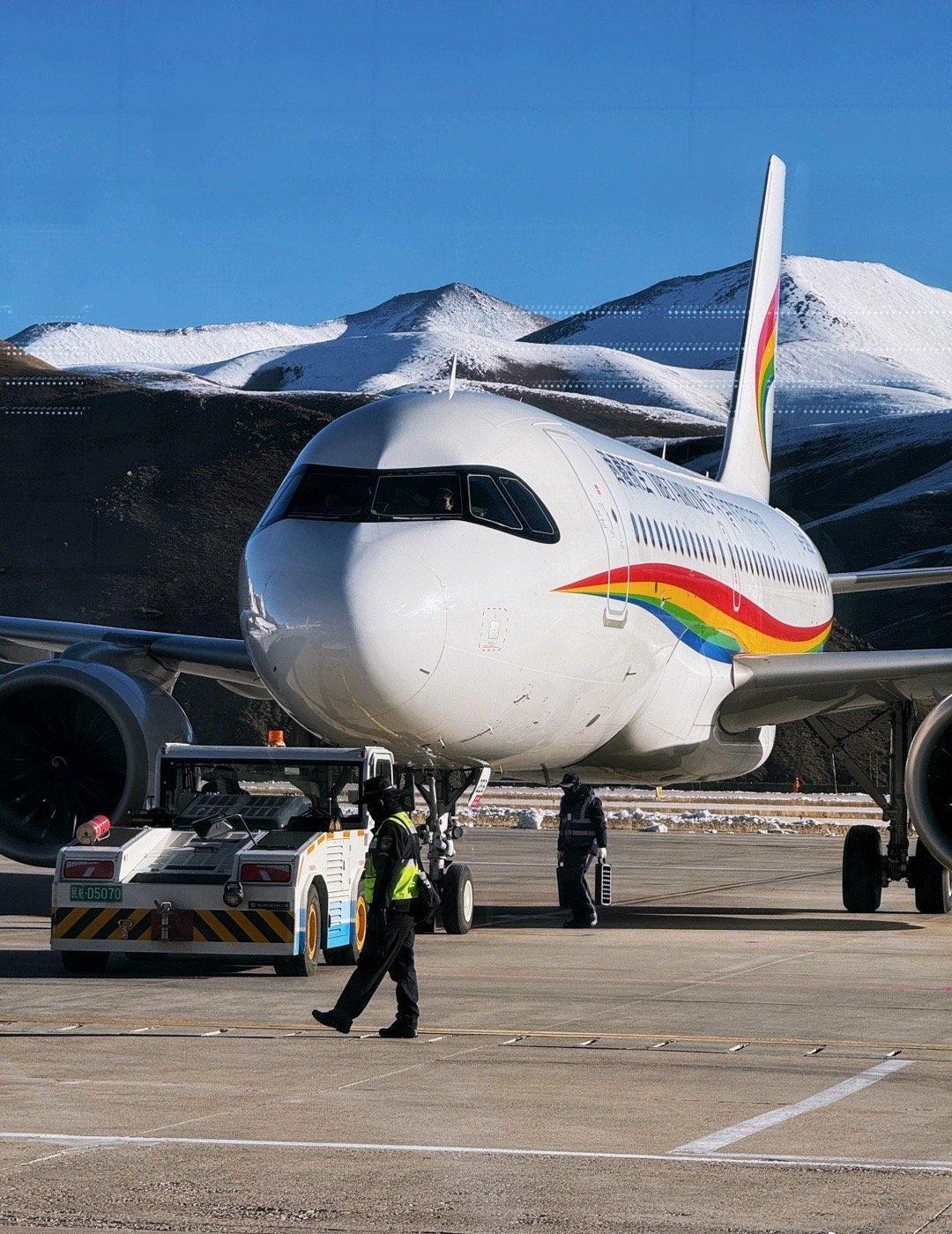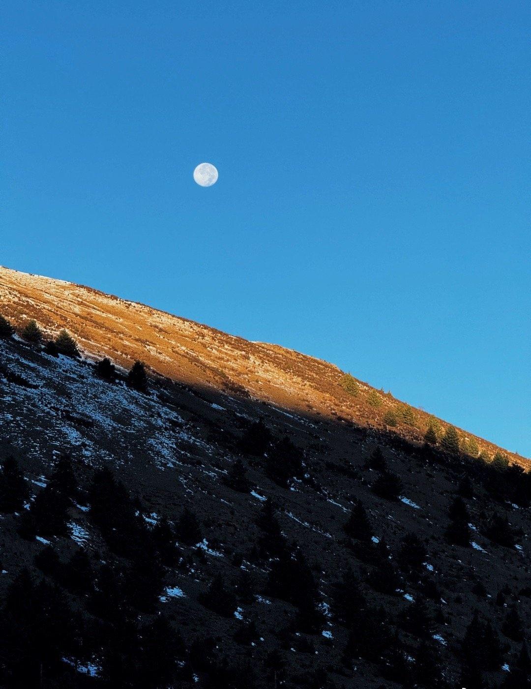 从昌都出发到邦达机场, 会看到月亮像个印章一样挂在天上, 而东边的阳光又撒满了整个山峰。 会路过白雪皑皑的邦达草原, 排排坐的电塔形成了一条奇特的天路。 海拔一路上升, 从3200多米到4300多米, 最后回到300米。