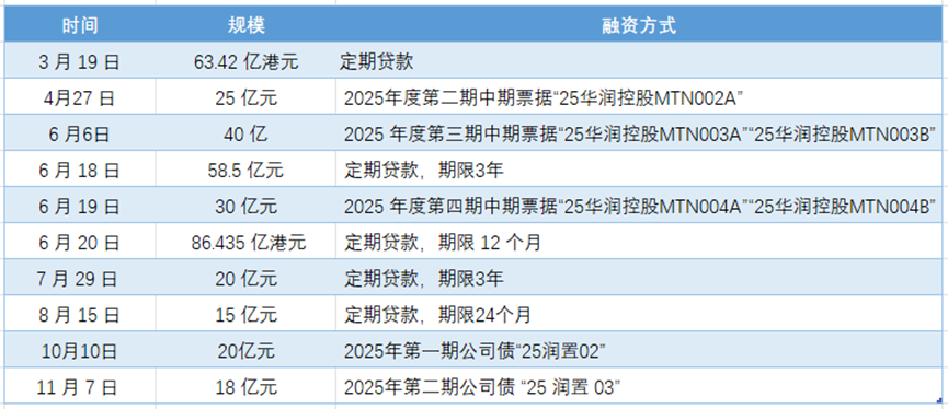 据不完全统计,华润置地已获得多项定期贷款、发行中期票据及公司债等,融资节奏较为密集,融资规模也较为稳定。