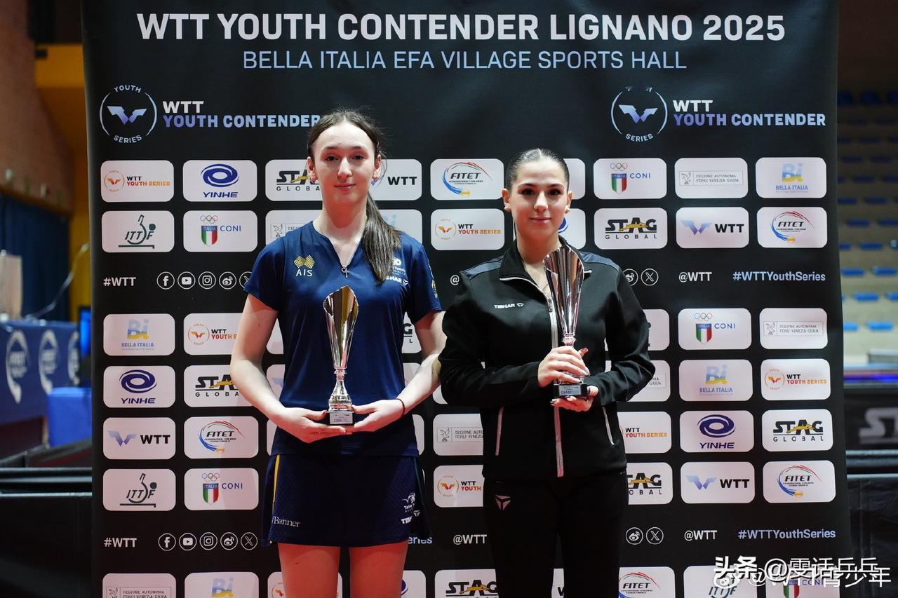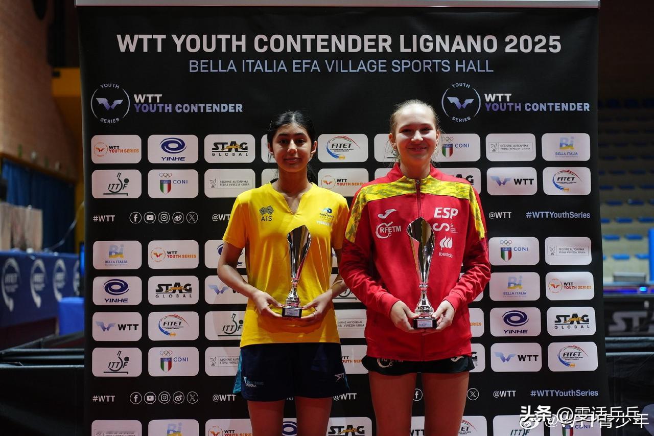 利尼亚诺站赛果! WTT青少年常规挑战赛利尼亚诺站2025 U19男单冠军🏆费利佩·多蒂·阿拉多🇧🇷 U19女单冠军🏆萨拉·托基奇🇸🇮 U17男单冠军🏆内森·皮拉尔德🇫🇷 U17女单冠军🏆伯佐萨·卡萨斯🇪🇸 U15男单冠军🏆刘子航🇨🇳 U15女单冠军🏆蕾娜塔·希普莎🇪🇸 U13男单冠军🏆路易斯·费格尔🇦🇹 U13女单冠军🏆胡恩雅🇨🇭 U11男单冠军🏆塔维·萨马拉维拉🇱🇰 U11女单冠军🏆崔宣🇰🇷 cr WTT 2025.11.9