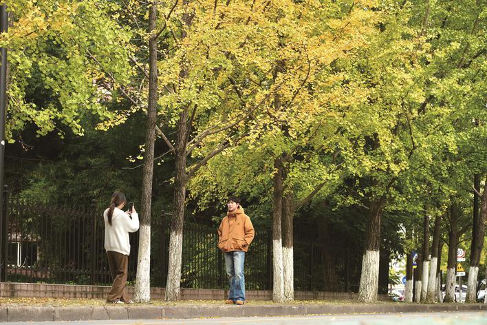 昨天,市区三塔路边的银杏已开始悄然“换装”,茂密的树冠正由绿渐黄。尽管还未到“全盛”之时,不少市民和摄影爱好者已提前赶来,用镜头记录下美好瞬间。