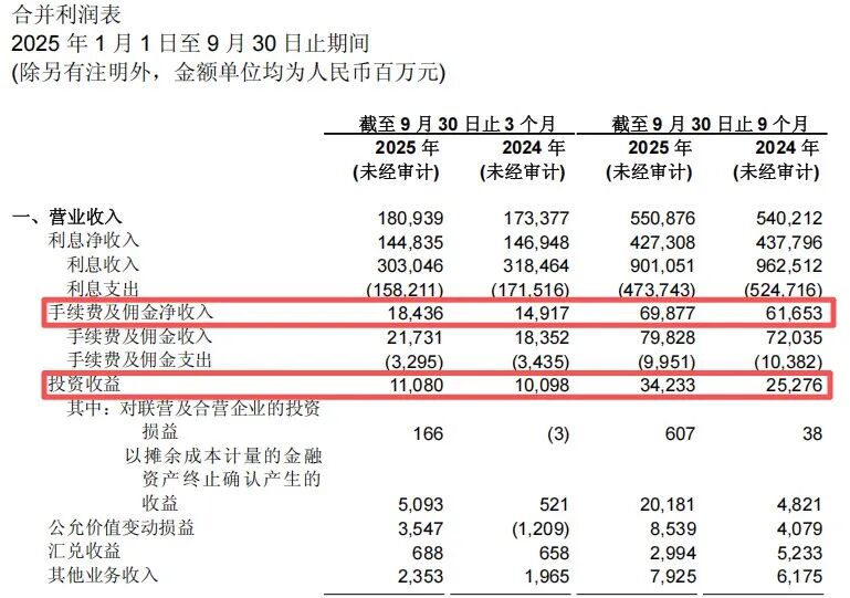 支撑这份业绩的核心引擎之一,在于非息收入的强劲增长。2025年前三季度,中国农业银行实现手续费及佣金净收入698.77亿元,同比增长13.34%;投资收益342.33亿元,同比增长35.43%,收入结构呈现出明显优化趋势。