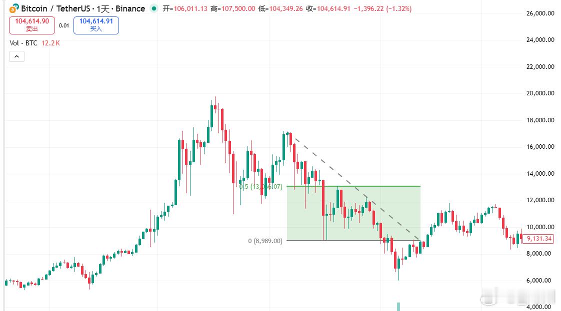 接上期几个观点,市场现在就在扫荡流动性,首先是向上扫掉107500-107000的流动性,并且在昨天提到如果不能有效站稳107000,那么将向下扫荡103800的流动性,事实显而易见先涨后跌,多空全拿掉,给我的感觉现在的市场更像一个统计学,而近期这一段的走势最切记的就是追涨杀跌 另外昨天说过,日线收长上影阴K,今日还将有一个延续下跌过程,昨日收一根吞没大阴,接下来的走势则比较明确,只用考虑是小幅反弹后跌还是小幅震荡再跌,反弹空肯定是主要思路,今日再延续下跌一日,周四白天震荡,晚间就看数据的影响,如果再度利空,市场可能真的得去92000-94000,毕竟周线还差一根针才比较好反弹 昨天还发现一个非常巧合的事情,17年牛转熊,双底结构之后反弹50%后下跌走熊,昨日如出一辙反弹50%下跌,并且走熊后下跌的反转位在1.382,如果历史会重复这波下跌的位置在92000附近,而这与我们一直关注的94000相差无几,并且在这个区间有一个期货缺口等待补足,不知道这一切是巧合还是操控 今日上方流动性在104400-105400区域,而104400这里正好有个较大的缺口,并且也是下跌确认的颈线部位,若反弹到这里肯定是最佳的空头机会,但市场不一定给到此位,所以交易上今日若反弹靠近104000附近直接先空,然后再看情况补仓操作 综上,日线吞没大阴今日将延续性下跌,上方关键压力在104400附近,并且是流动性所在区域,能到此位最佳空头机会,下方的流动性在101800,昨日大跌消耗了大量的空头力量,今日可能只维持一个震荡下跌,交易上短线为主,靠近104000直接空, 目标102000附近减仓保本损,最差情况价格将到达94000-92000区域,这里存在大幅度反弹的机会,如果再度测试前低附近不跌破,并且数据利好,可能将有新一轮反弹