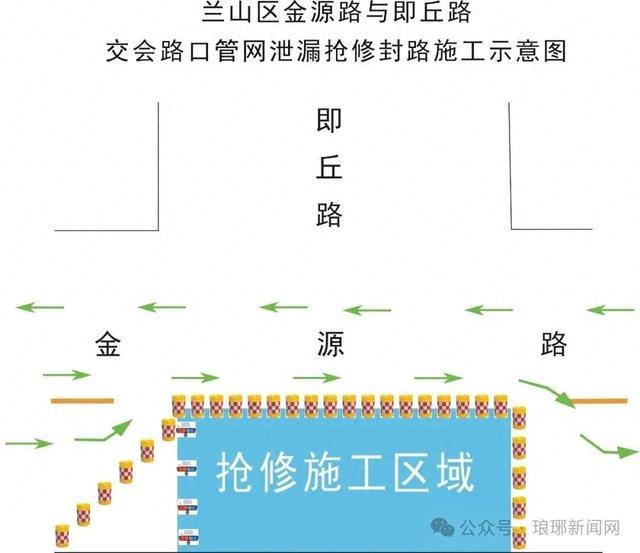 兰山区金源路与即丘路交会路口发现地下管网泄漏。我单位立马组织抢修人员进行管网抢修施工。根据《中华人民共和国道路交通安全法》等相关法律法规的规定,现将施工路段通告如下: