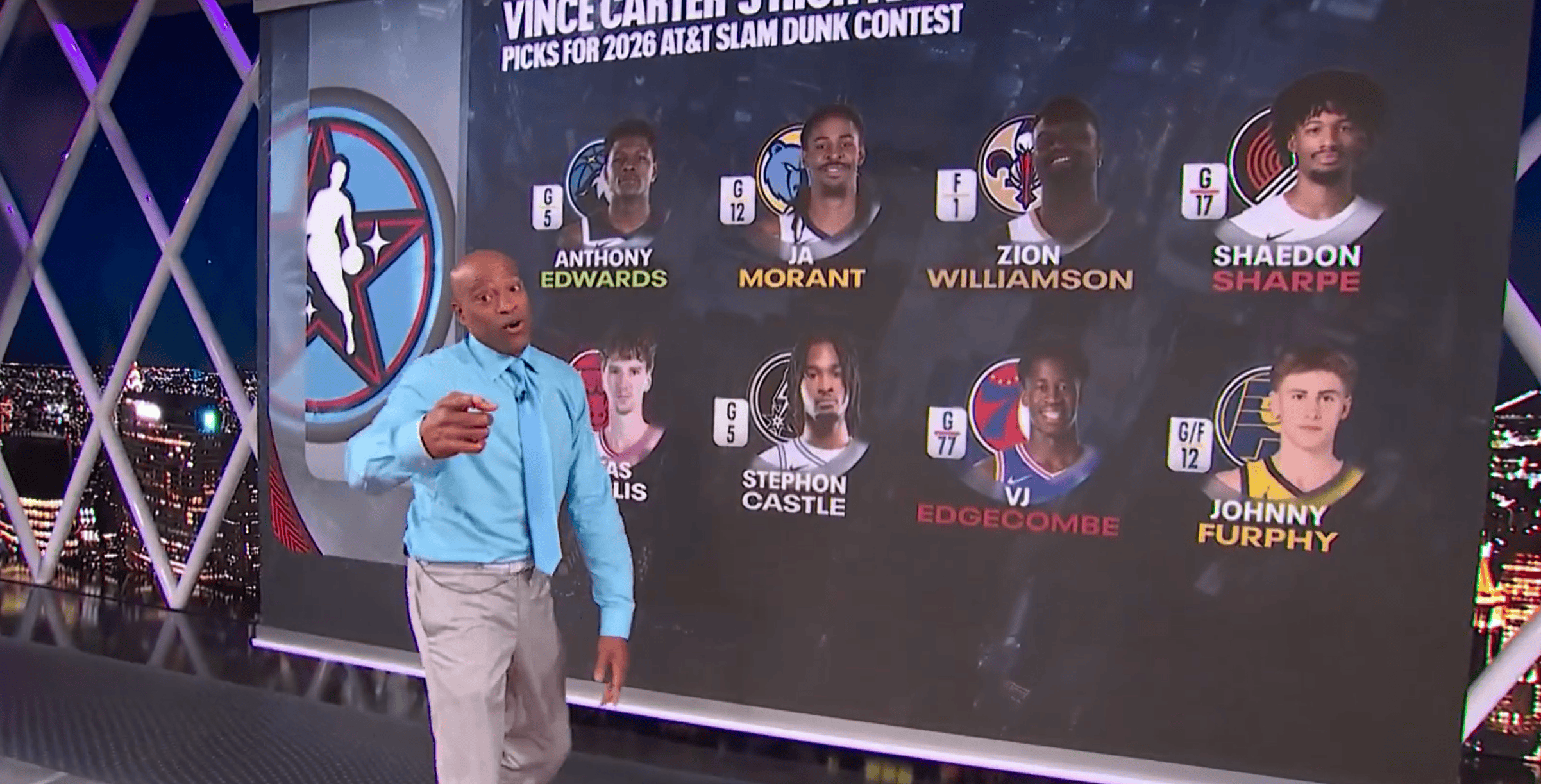 虎扑11月12日讯今日,NBC评论员文斯-卡特在节目中分享了自己希望在扣篮大赛上看到的8位球员: